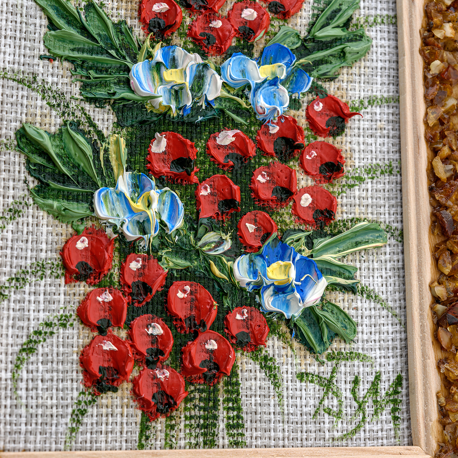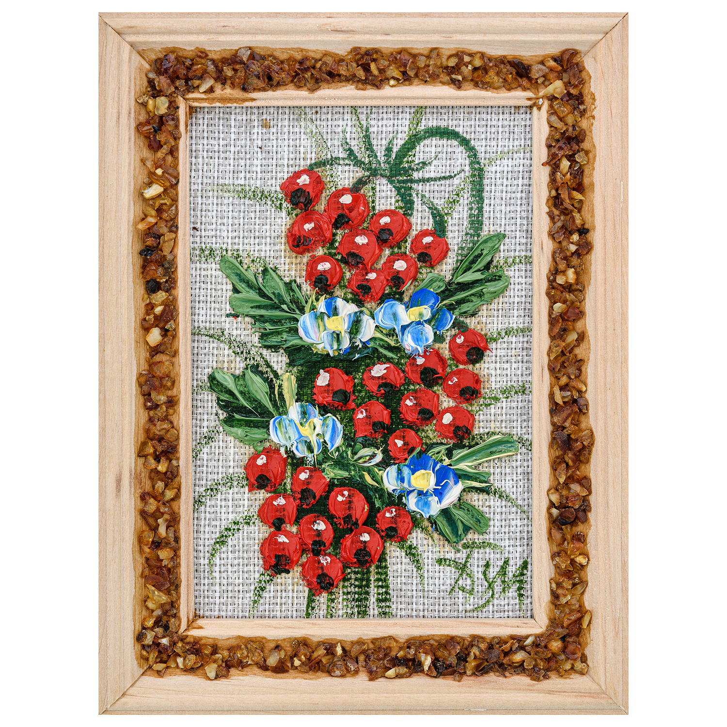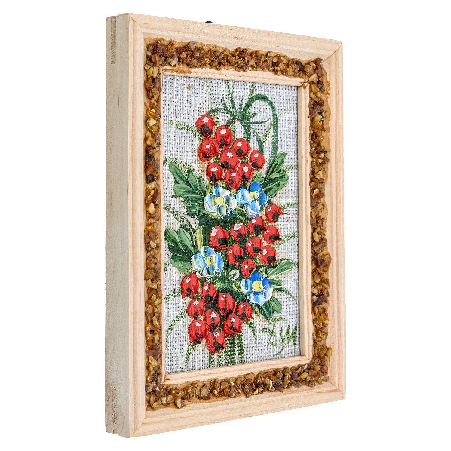Материалы: холст, краски, дерево, янтарь.