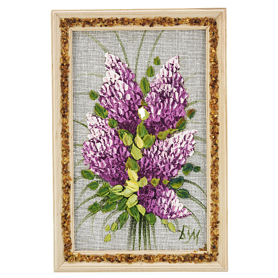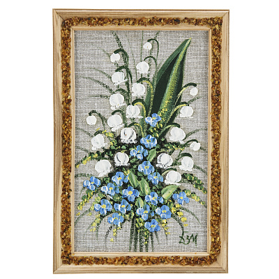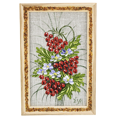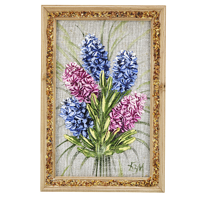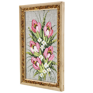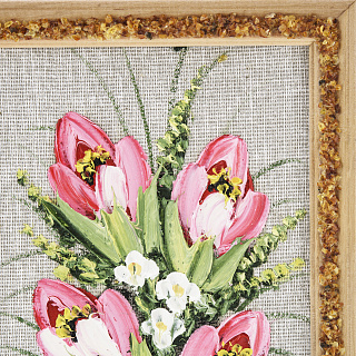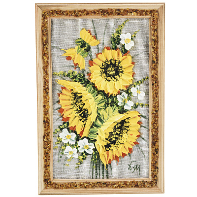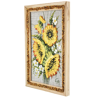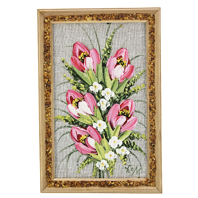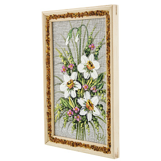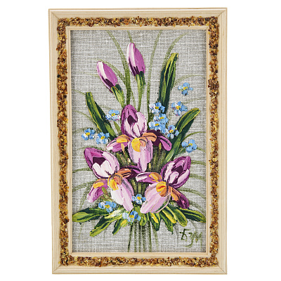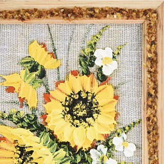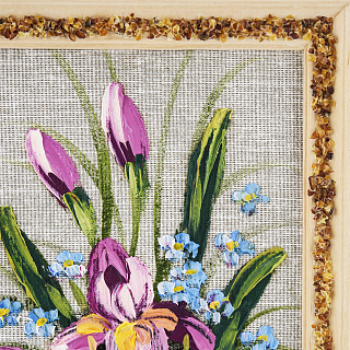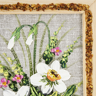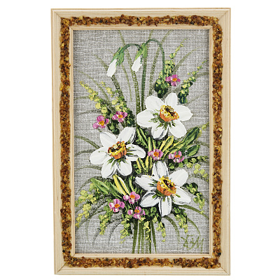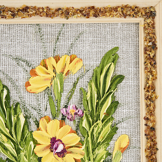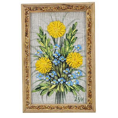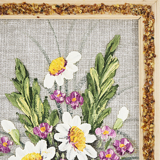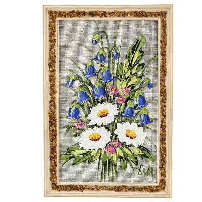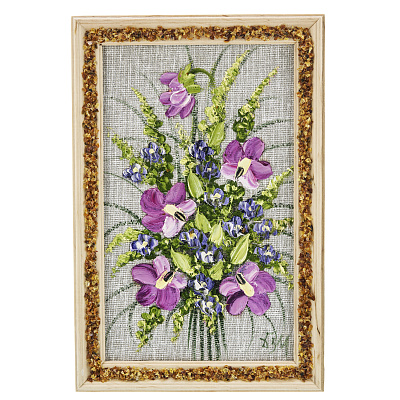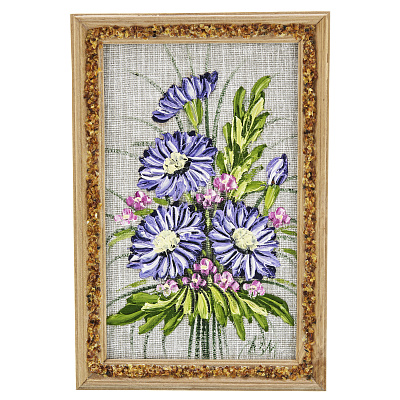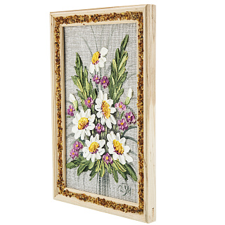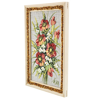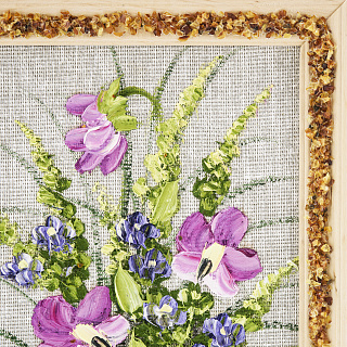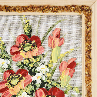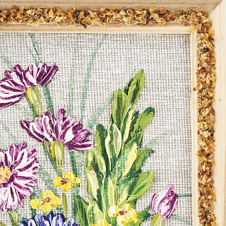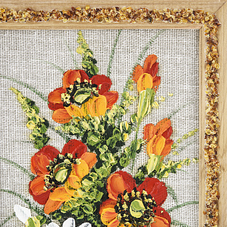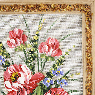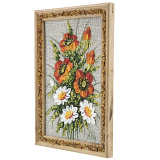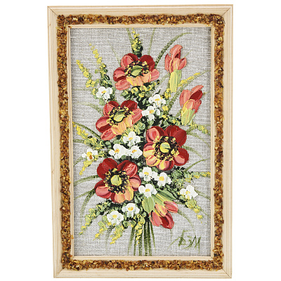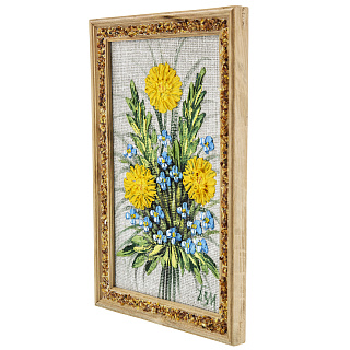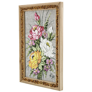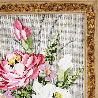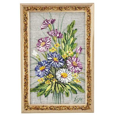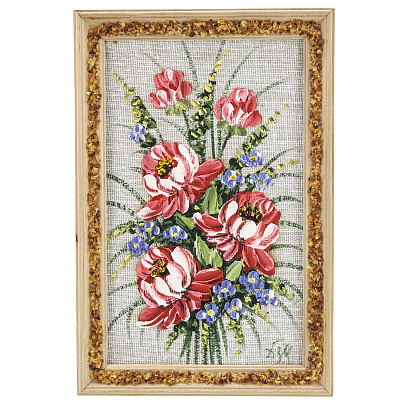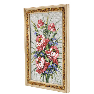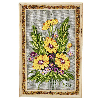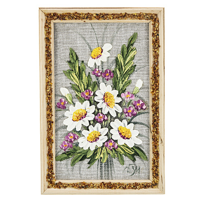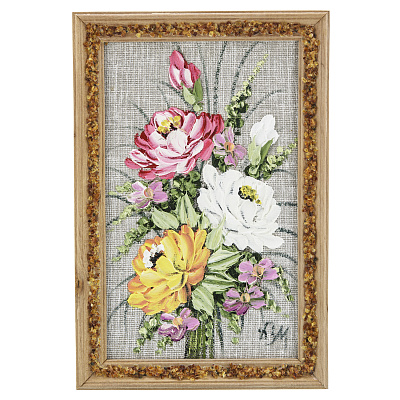 Панно в янтарной раме «Букет цветов» 27х18 см