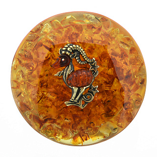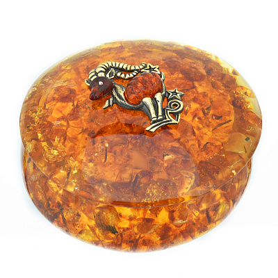 Круглая шкатулка из янтаря «Знак зодиака Козерог»