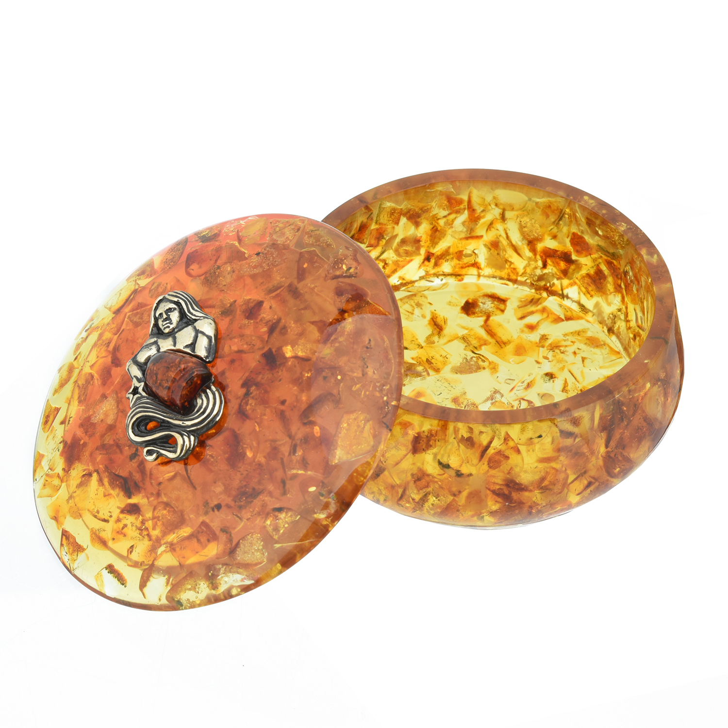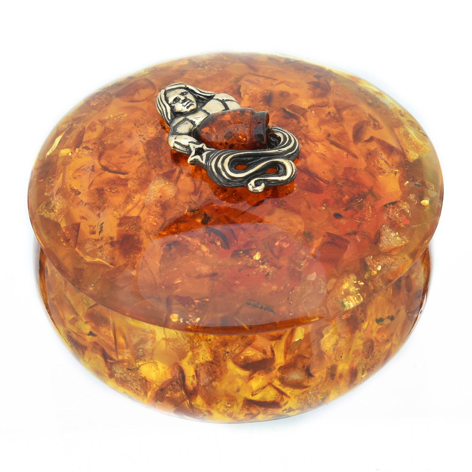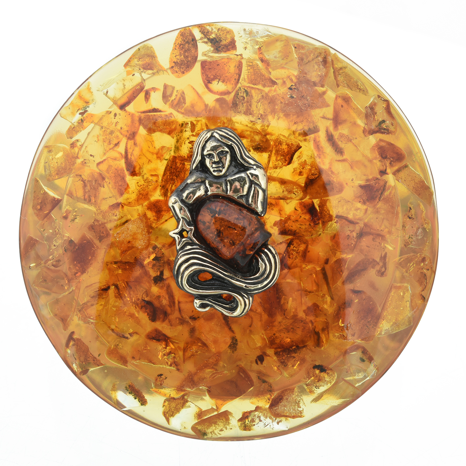 Круглая шкатулка из янтаря "Знак зодиака Водолей".
