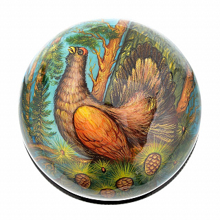 Лаковая миниатюра шкатулка для колец и запонок «Глухарь» Палех