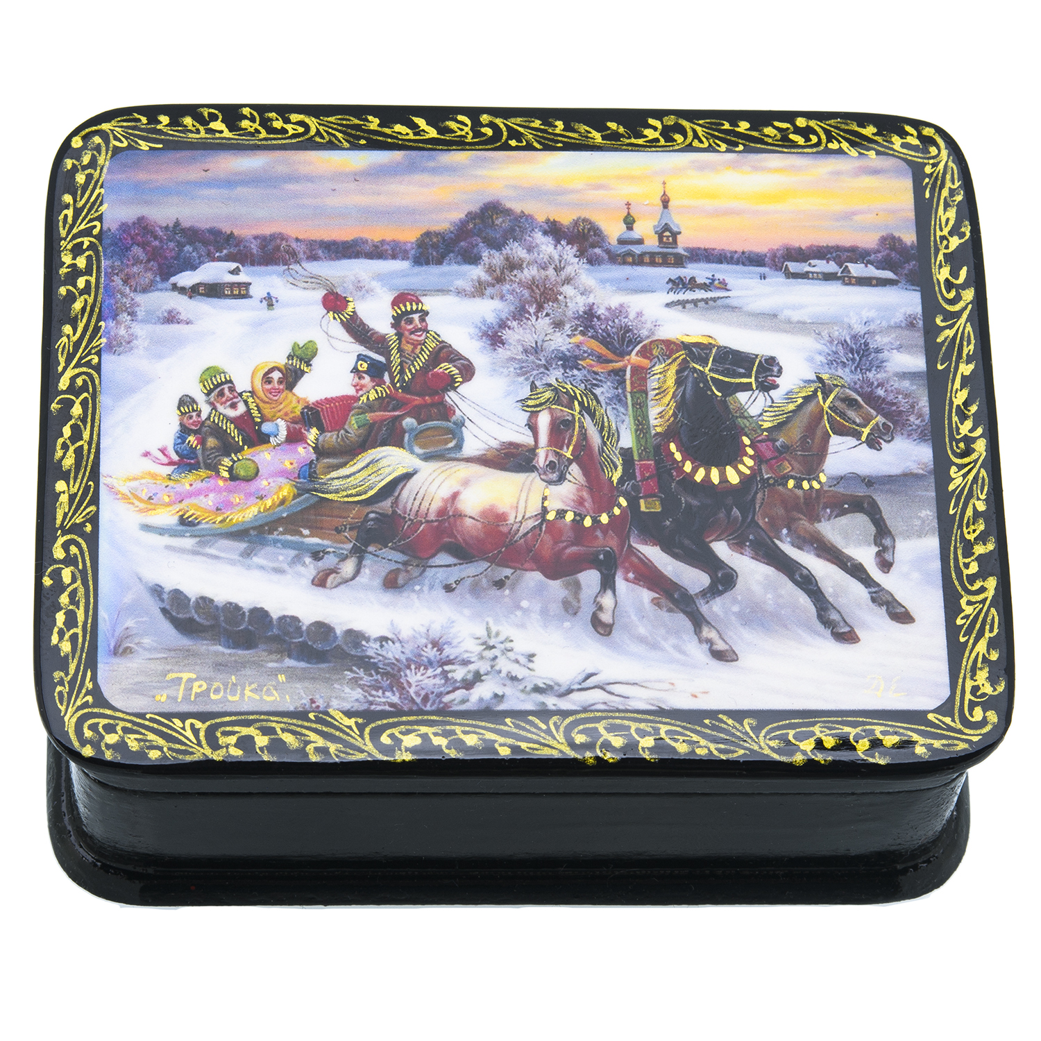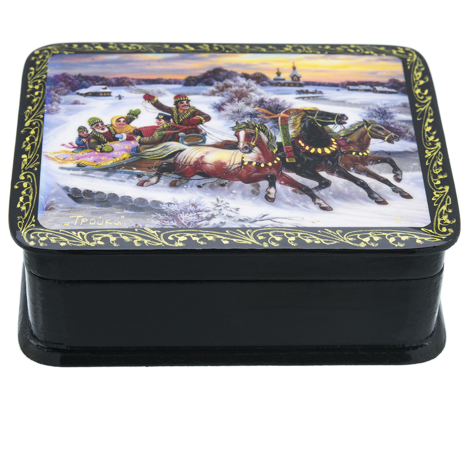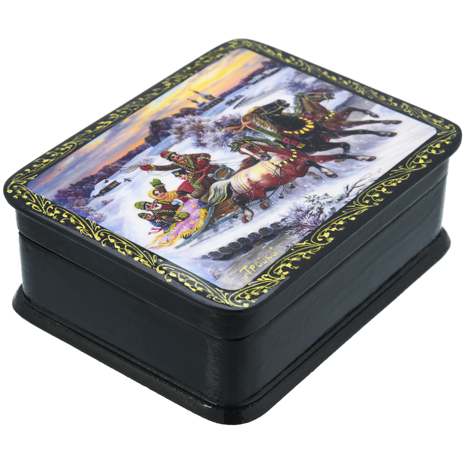 Шкатулка с художественной росписью "Зимняя тройка".