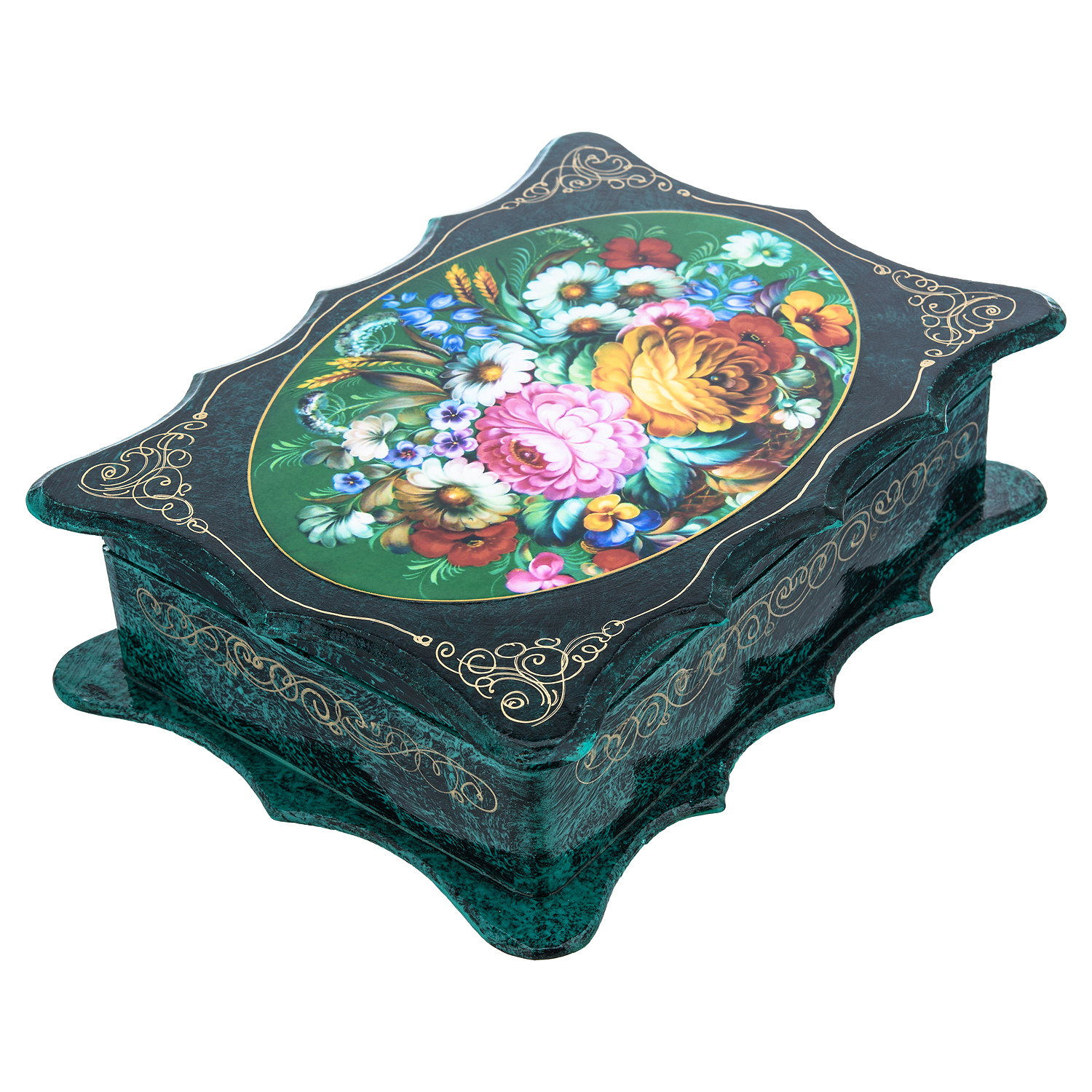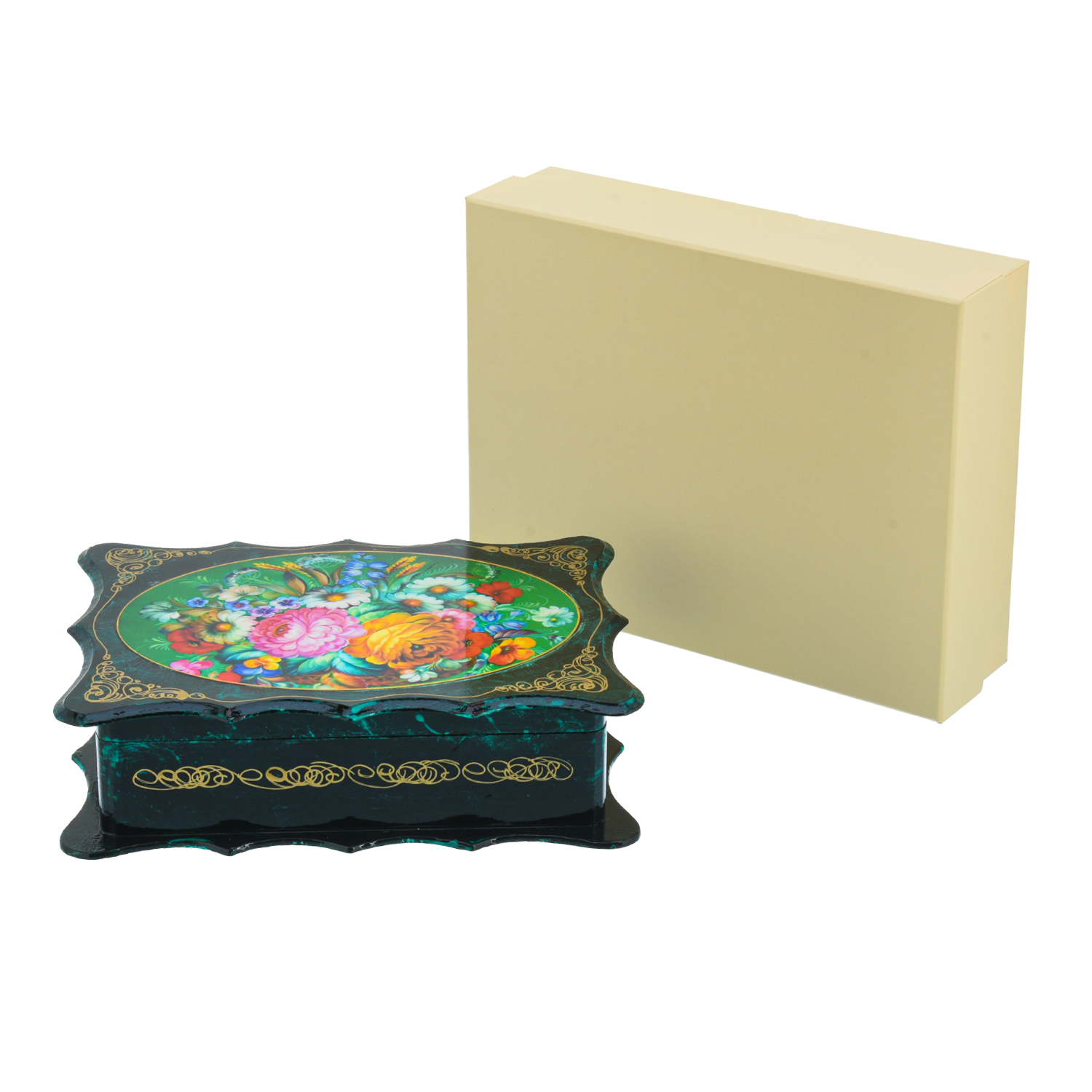 Шкатулка, внутри которой находится подарочный платок, идеально подходит как подарок для особенного человека. Шкатулка выполнена из папье-маше и украшена традиционным орнаментом. Подарочный платок внутри шкатулки добавит нотку изысканности и станет по-настоящему запоминающимся и необычным подарком.