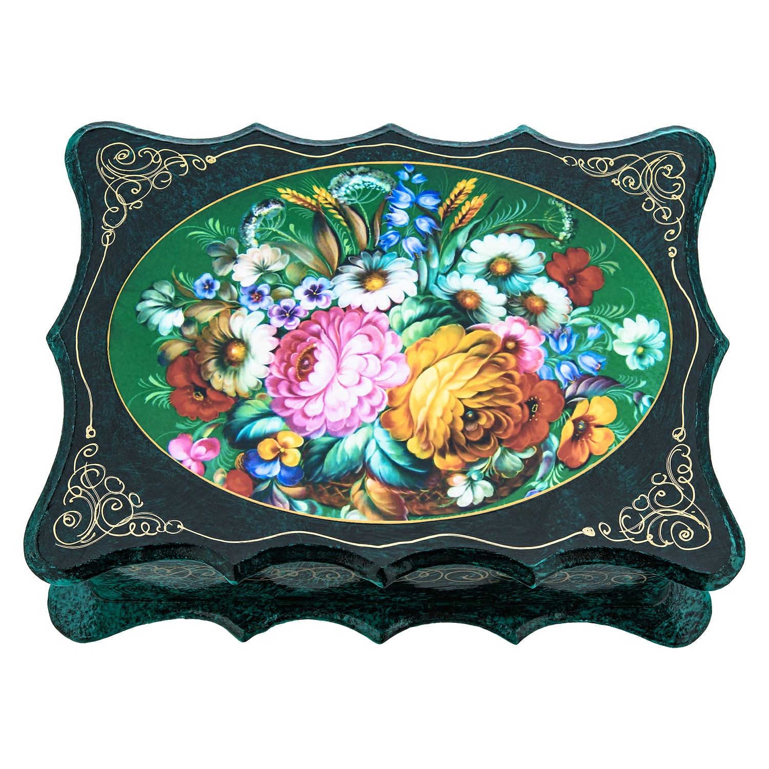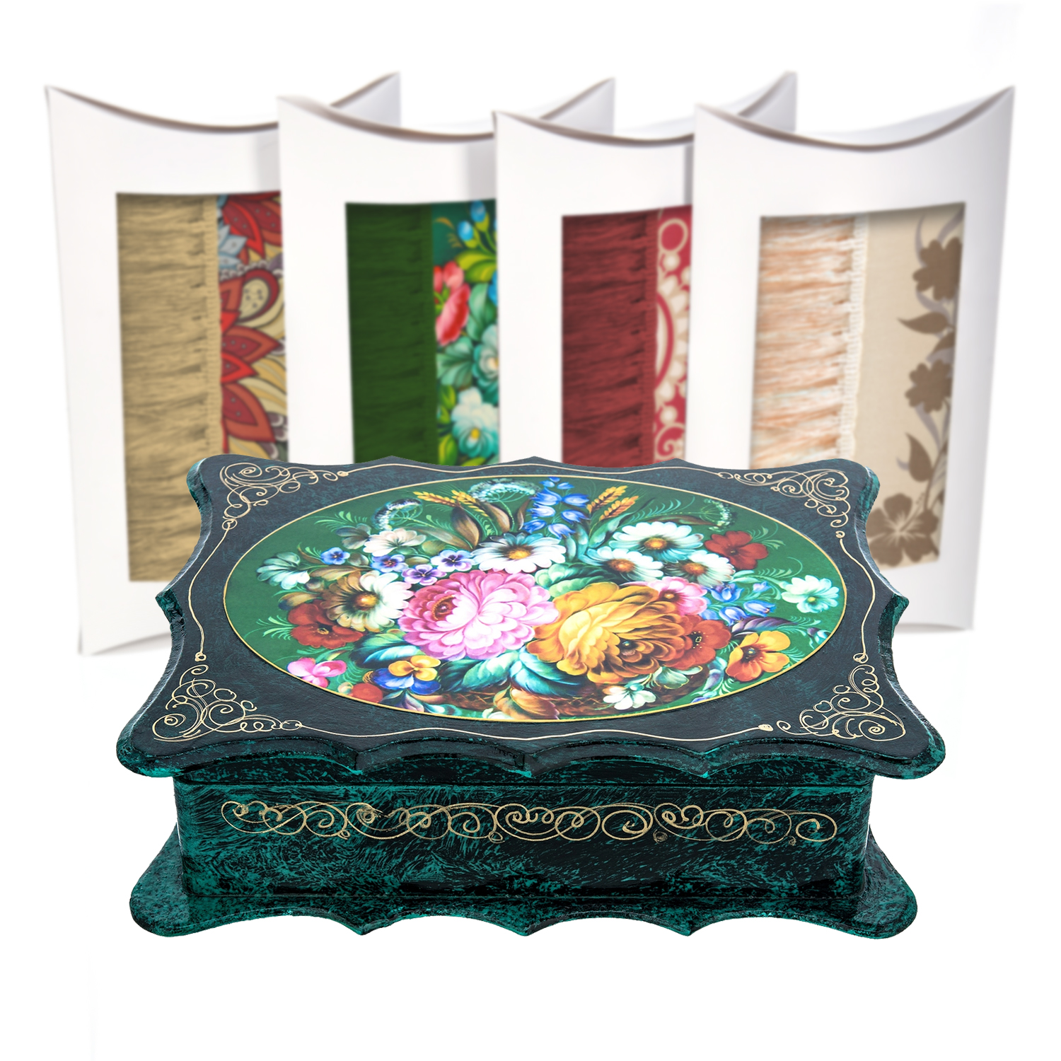 Уникальный подарок! Шкатулка "Цветочные мотивы" с подарком внутри - шерстяным платком с цветочным орнаментом размером 120х120 см.