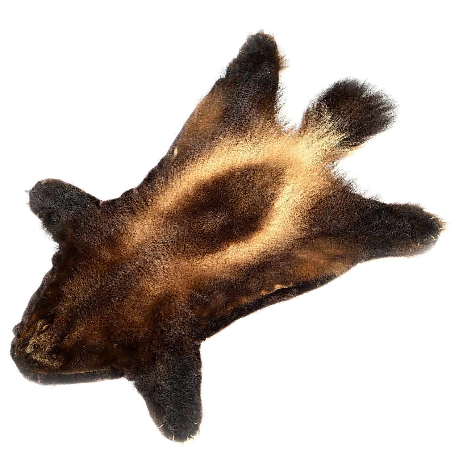 Шкура россомахи обладает жестковатым густым ворсом с мягким пушком, к которому приятно прикасаться. Игра оттенков коричневого цвета с золотистой полосой и фактуры добавляет изделию изысканность.
