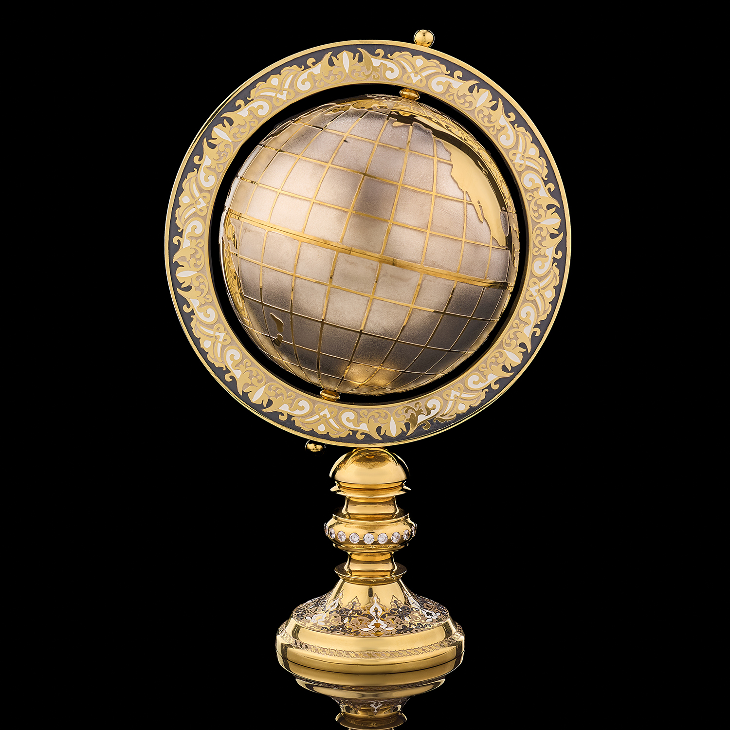 Глобус сувенирный с позолотой и фианитами. Златоуст.