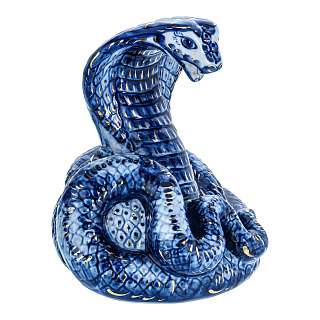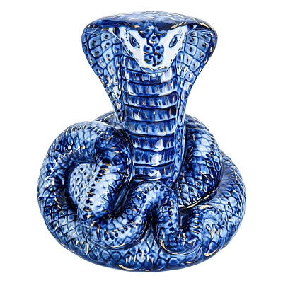 Змея Символ года 2025. Скульптура «Кобра». Гжель в золоте