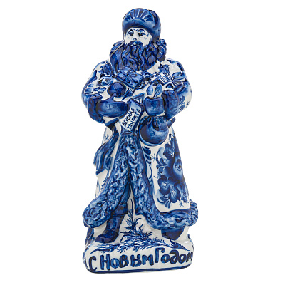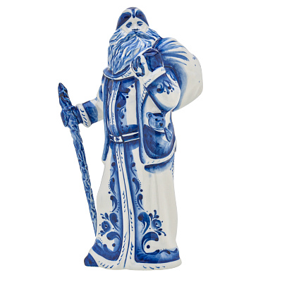 Скульптура фарфоровая «Дед Мороз». Гжель в цвете и золоте