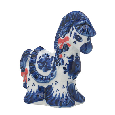 Лошадь Символ 2026 года. Статуэтка «Лошадка-модница». Гжель