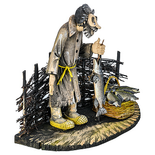 Резьба по дереву. Скульптура «Рыбак с корзиной»