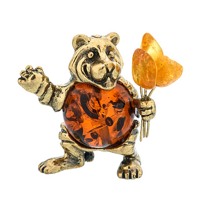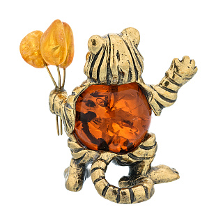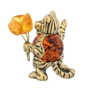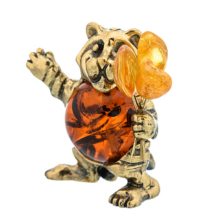 Статуэтка с янтарем «Тигренок с букетом»