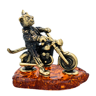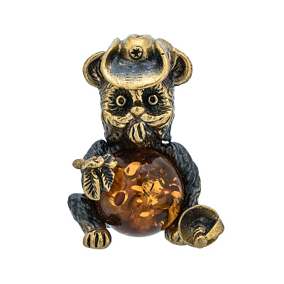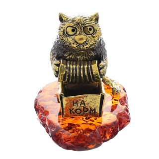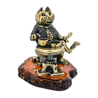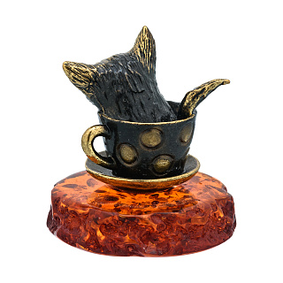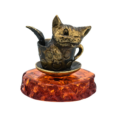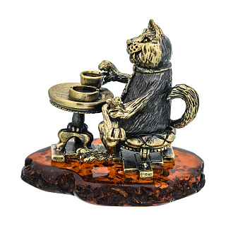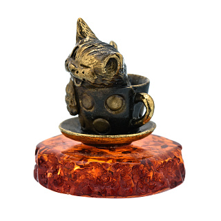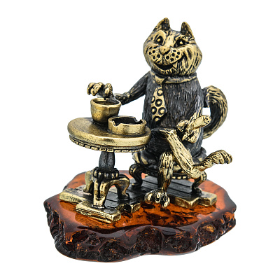 Статуэтка с янтарем «Кот с чашечкой кофе»