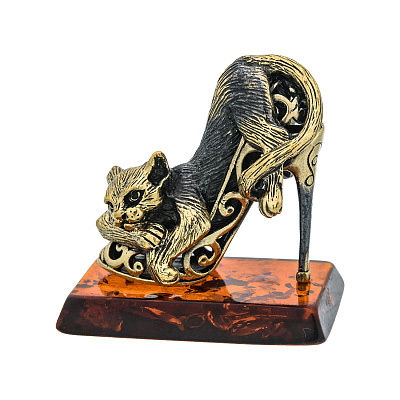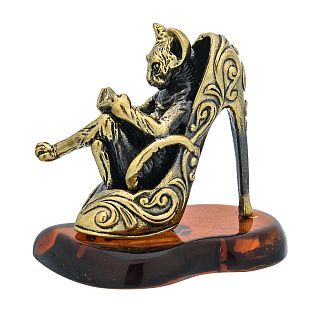 Статуэтка с янтарем «Кот на туфельке Золушки»