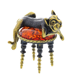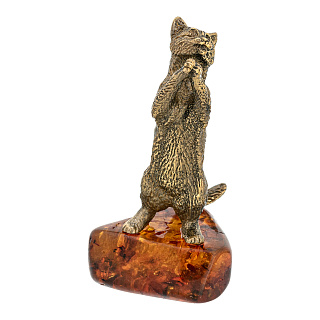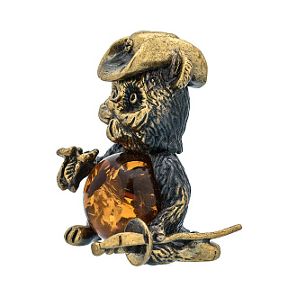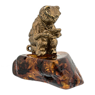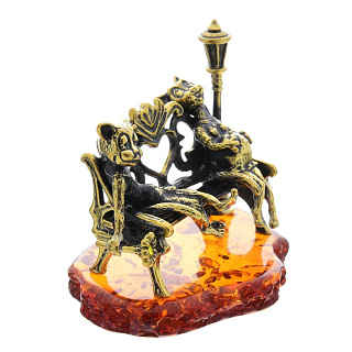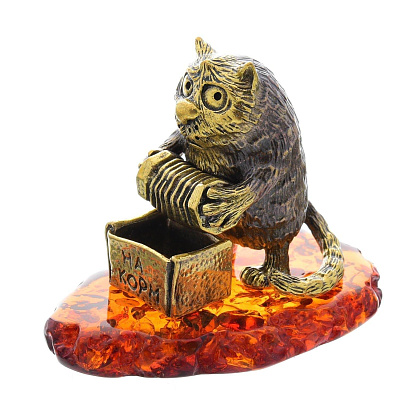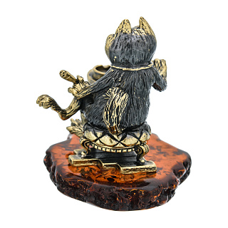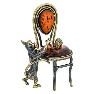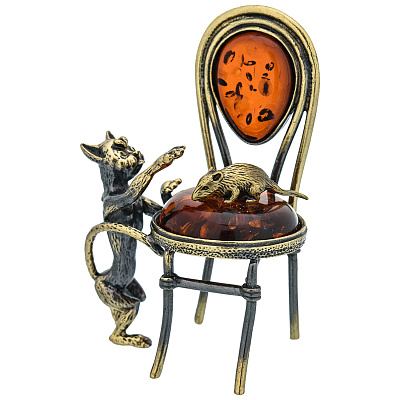 Статуэтка с янтарем «Кот и мышка на стуле»