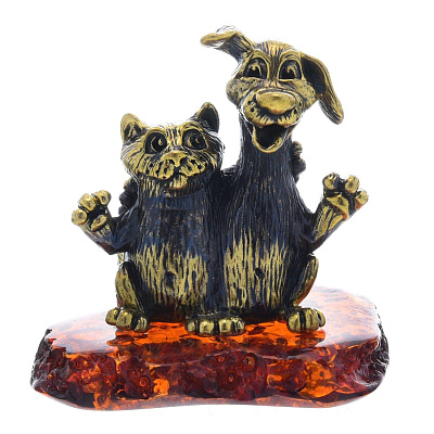 Статуэтка с янтарем «Кот и пес. Жизнь удалась»