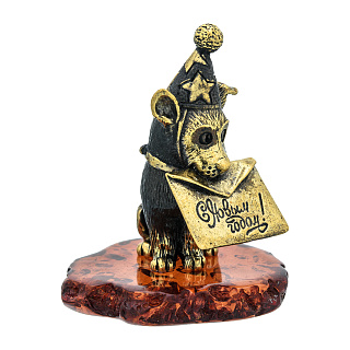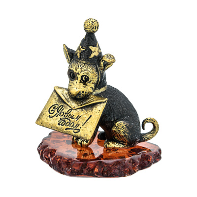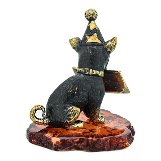 Статуэтка с янтарем «Собака с новогодней открыткой»