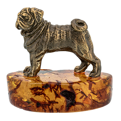 Статуэтка с янтарем «Собака мопс»