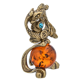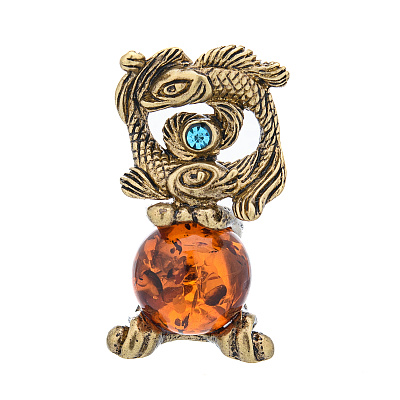 Статуэтка из бронзы с янтарем «Знаки зодиака. Рыбы»