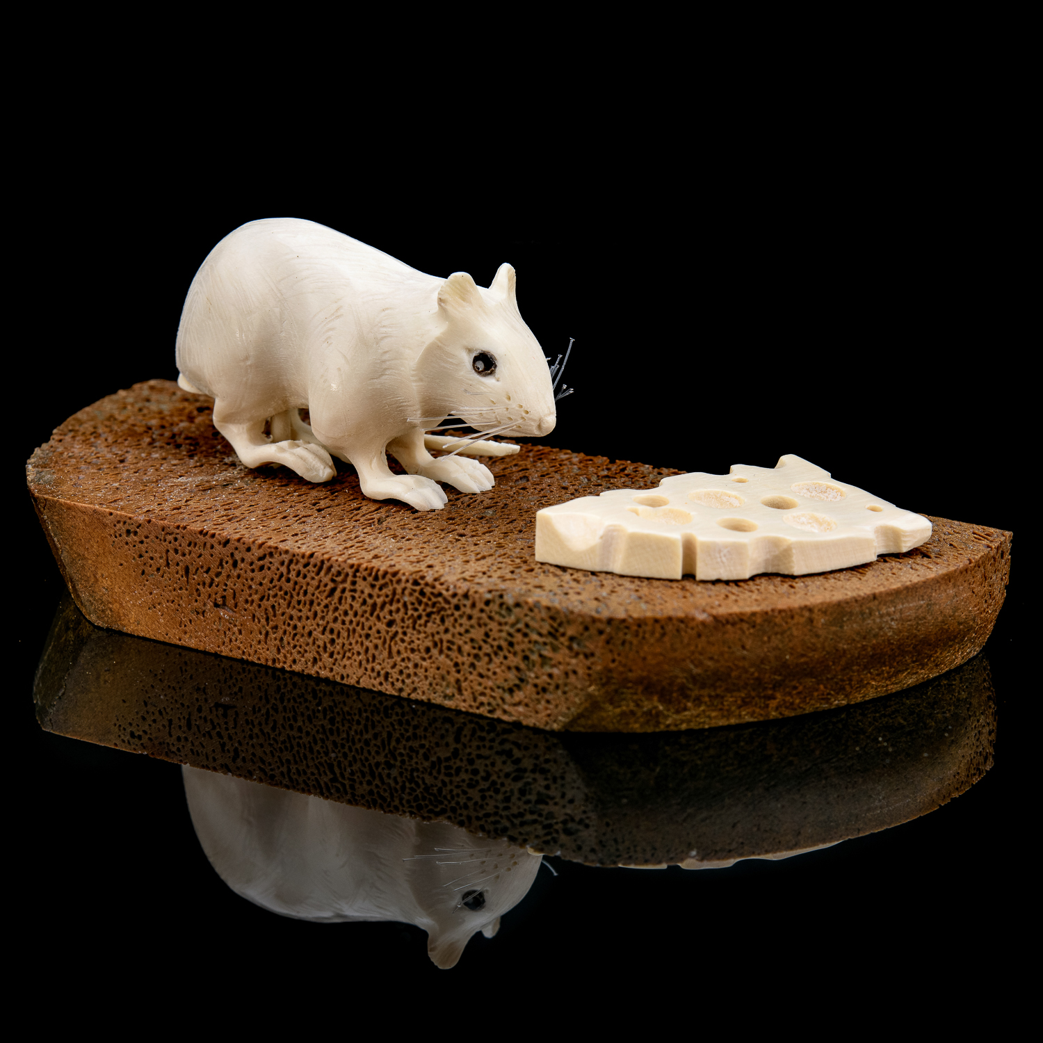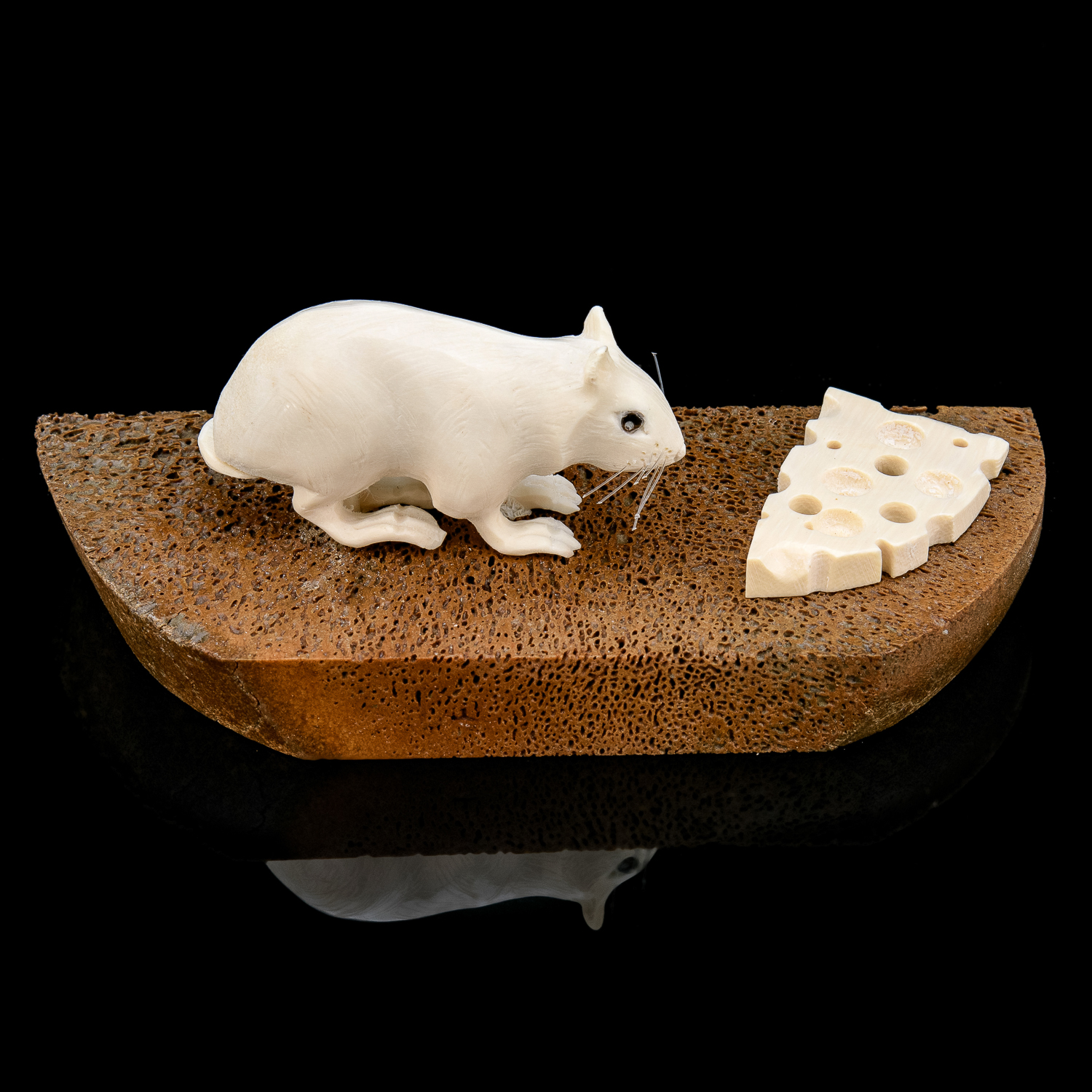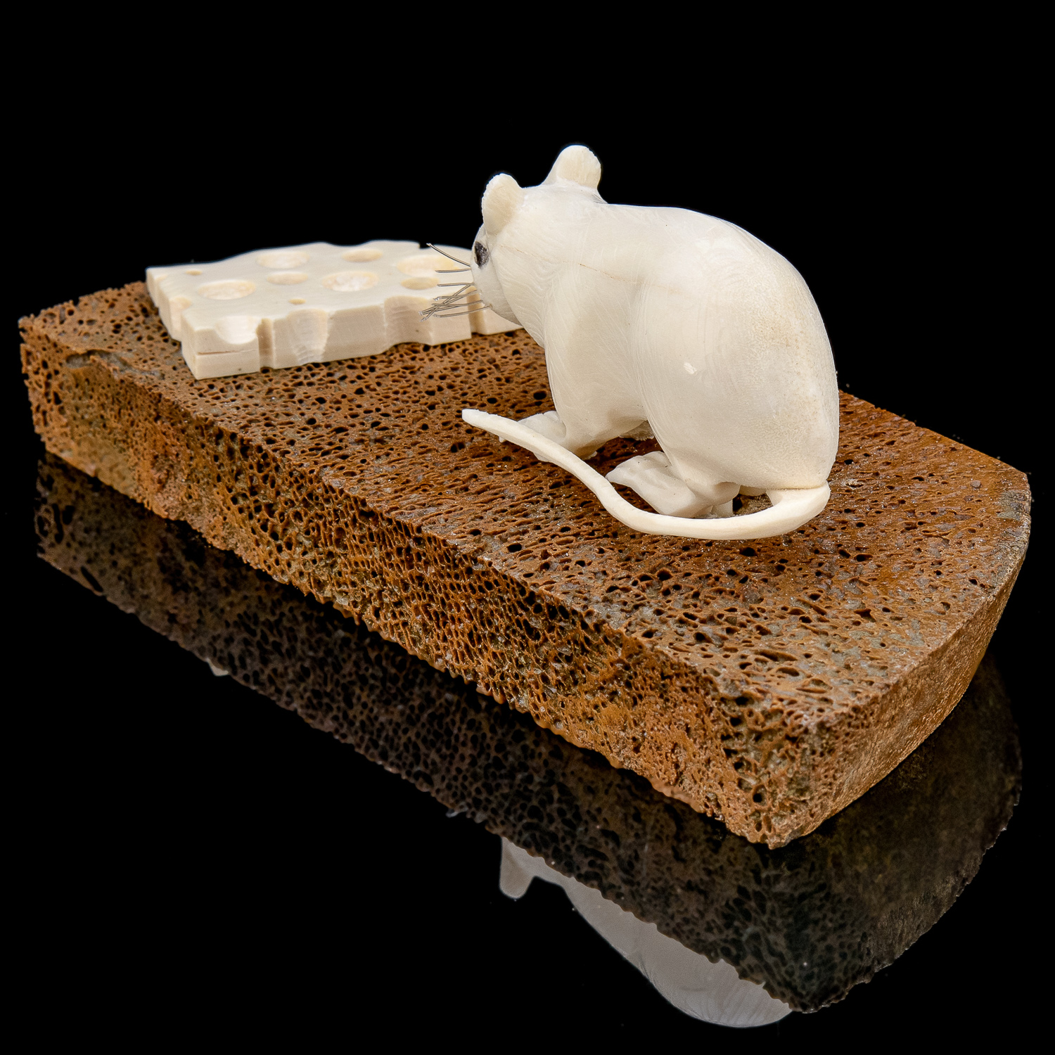 Скульптура из кости "Мышь на хлебе".