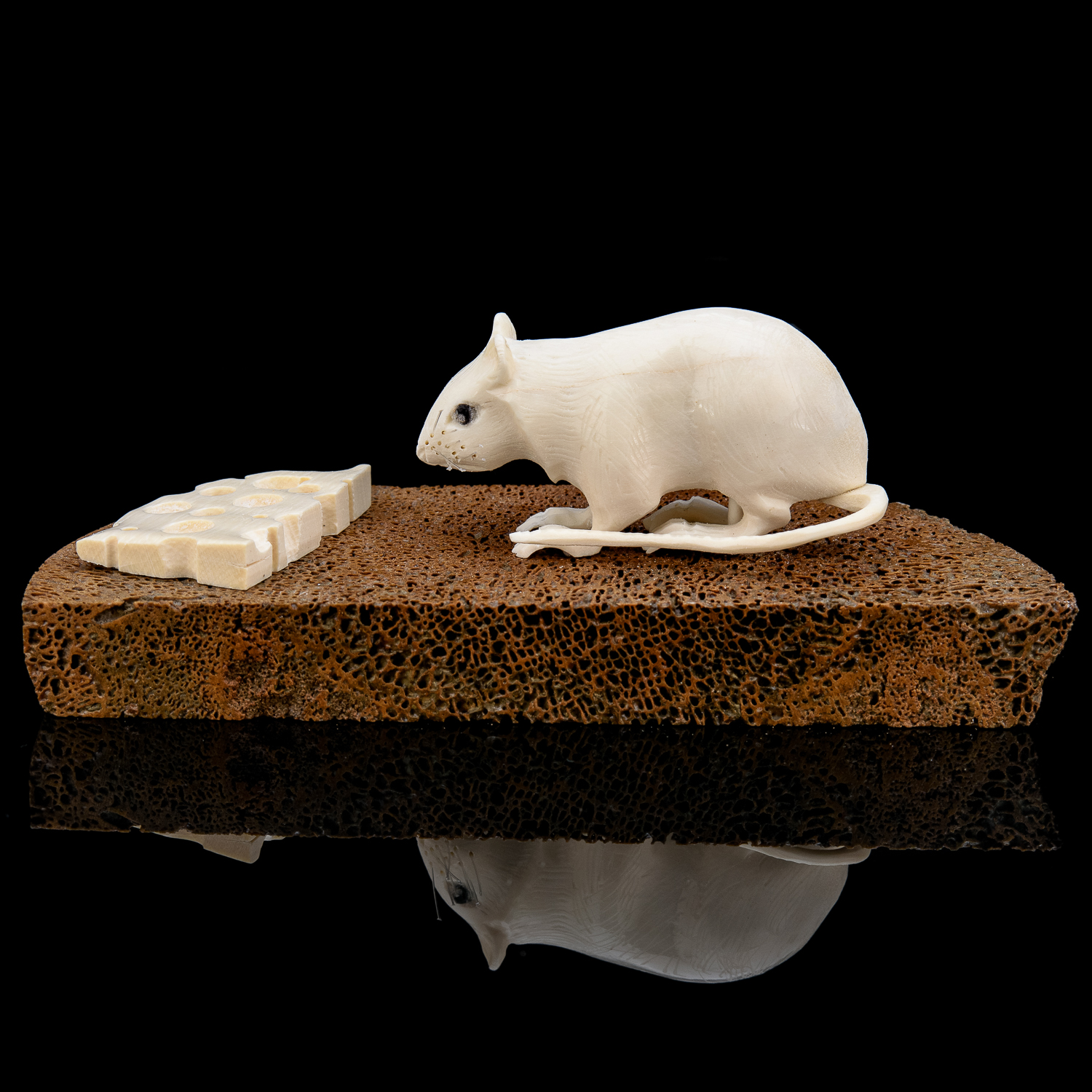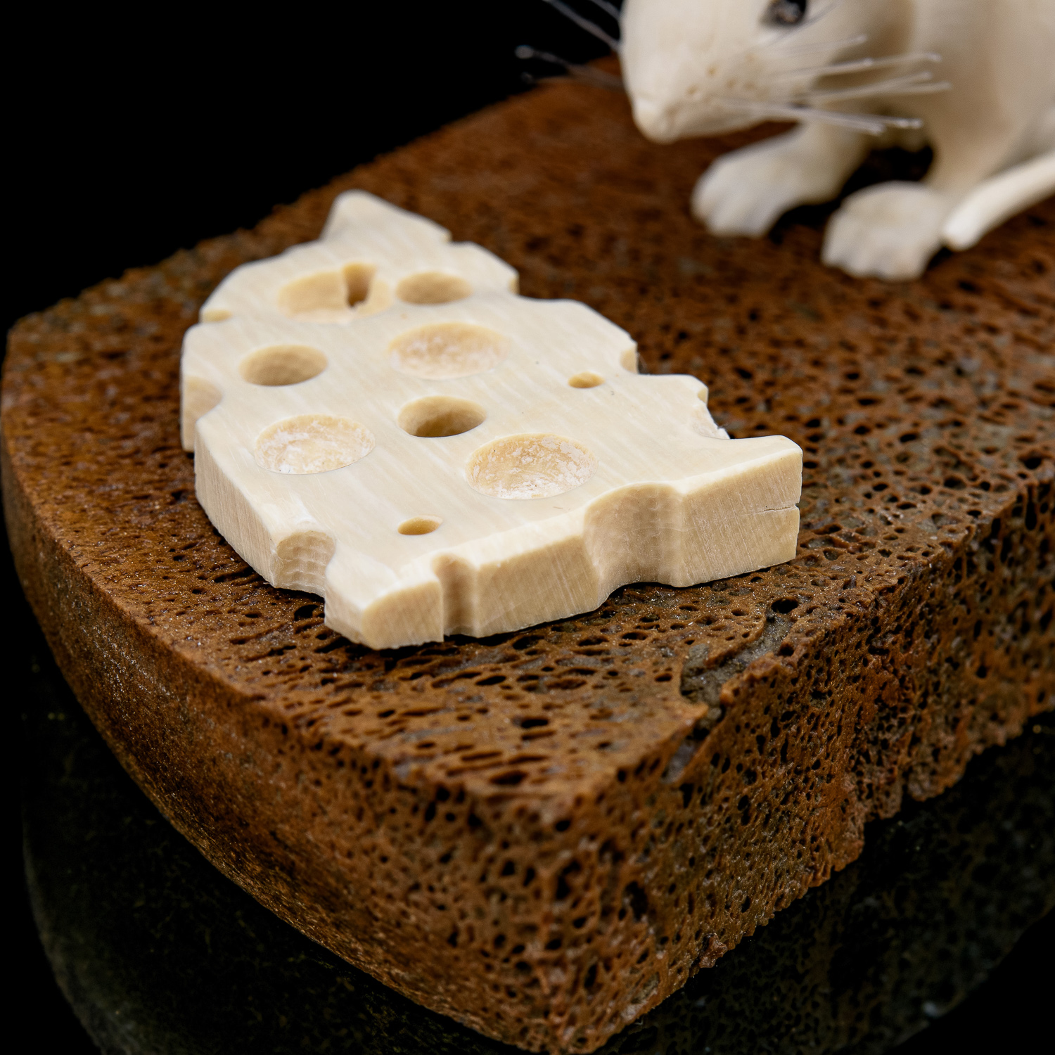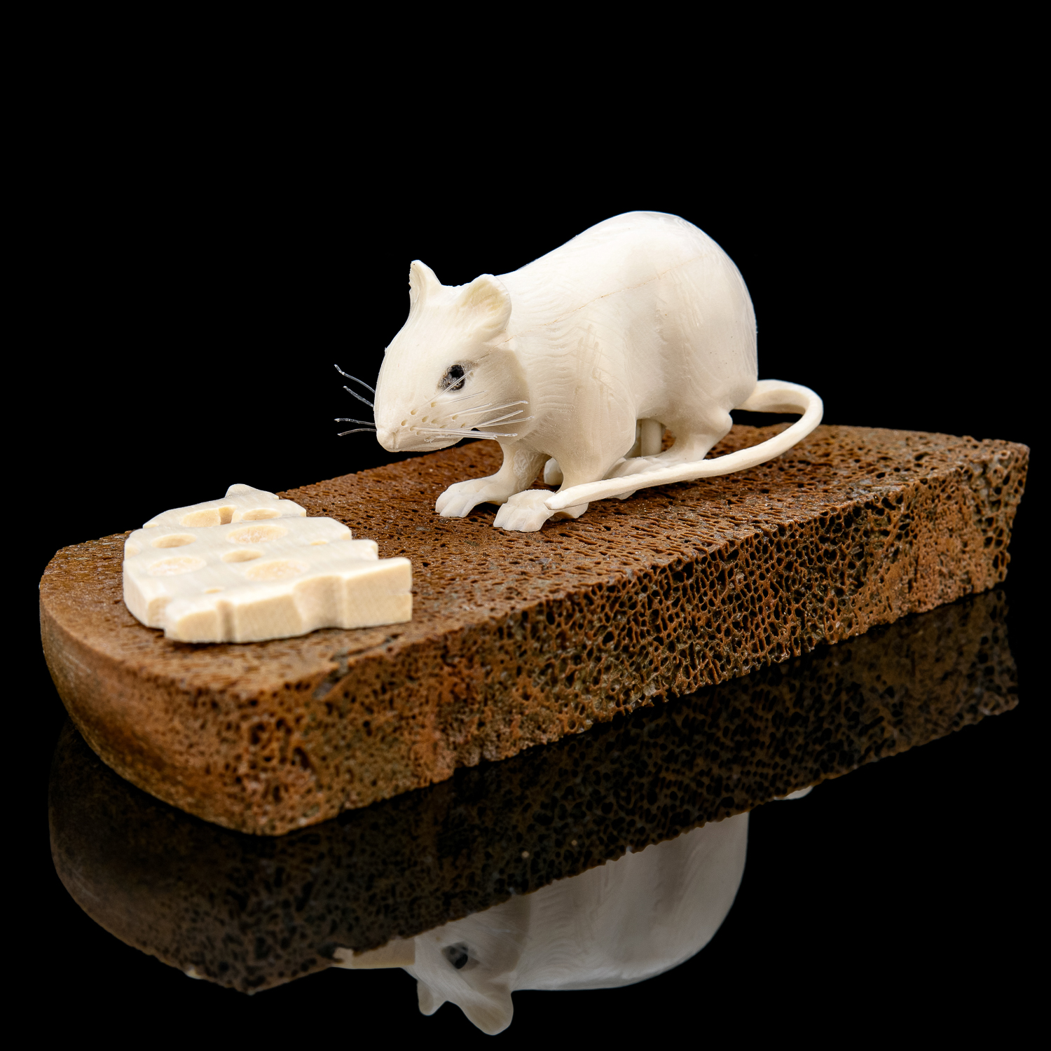 Скульптура из кости "Мышь на хлебе".
