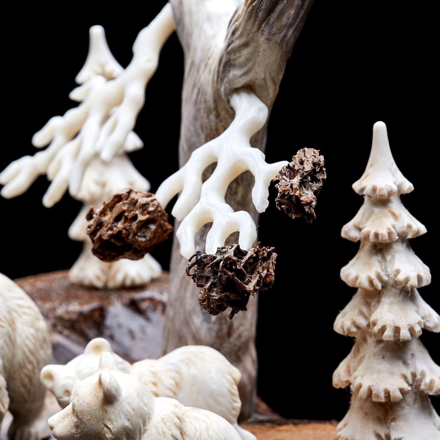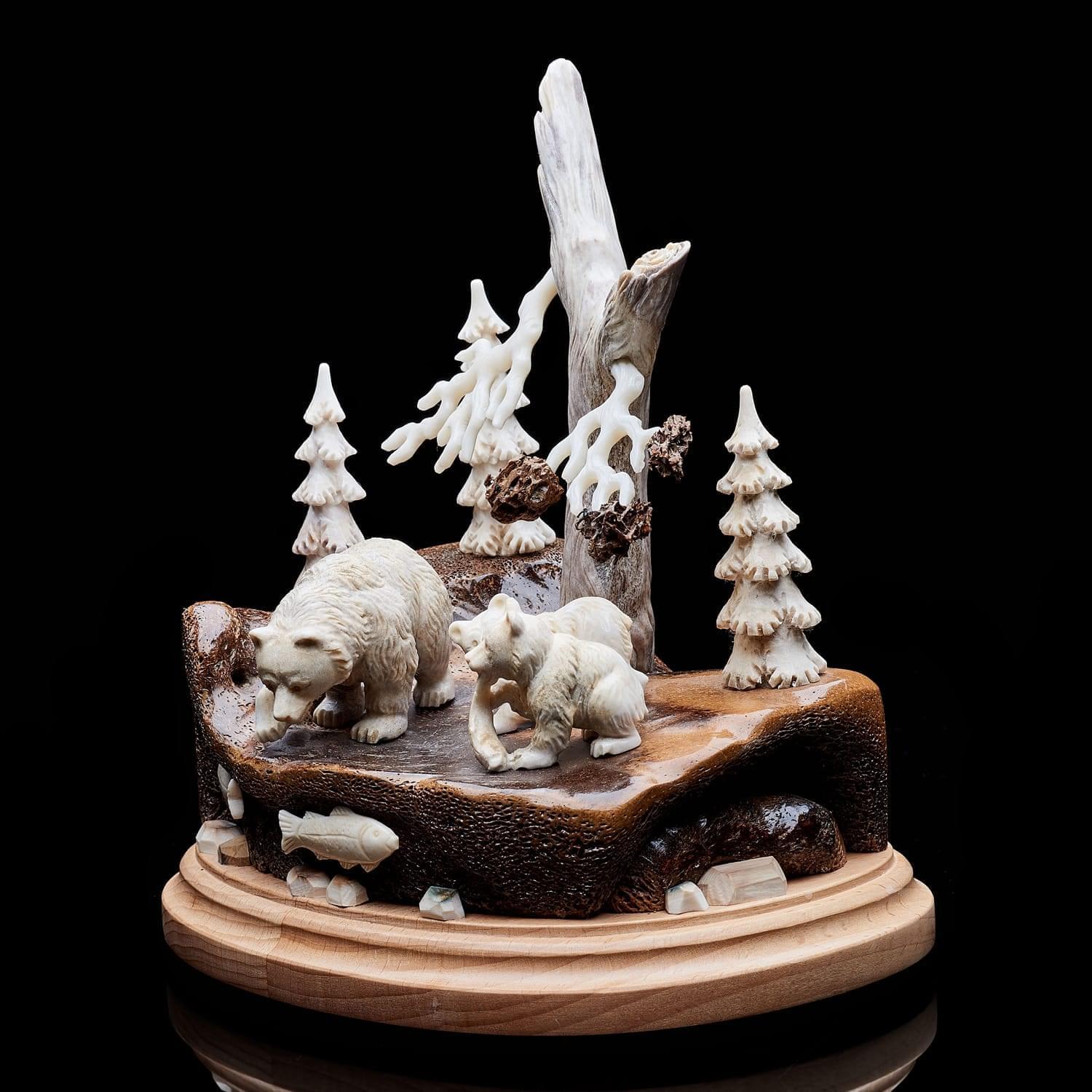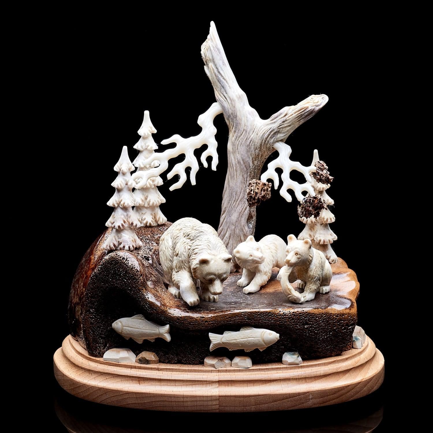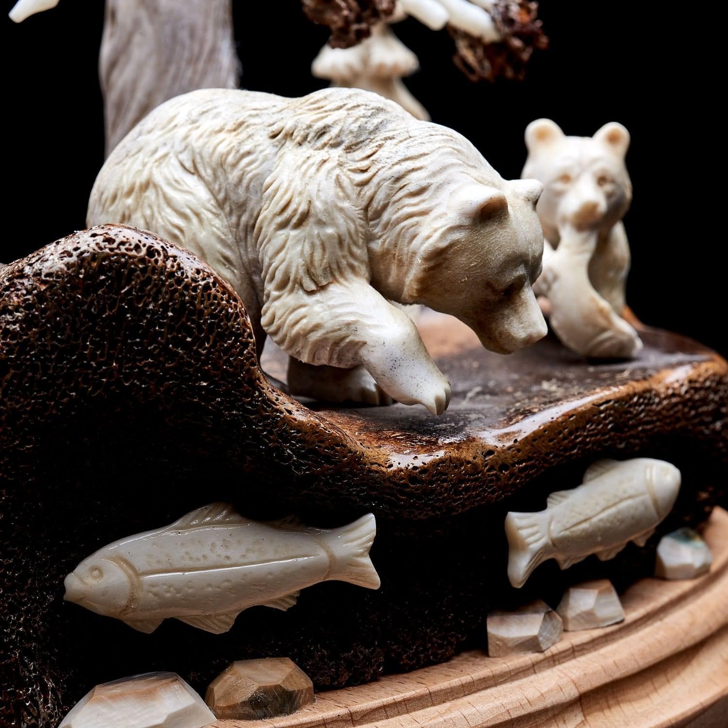 Китайцы, ценители народной медицины, использовали как лекарство против тяжелых осложнений порошок из рога лося. Он продлевает жизнь, увеличивает силы, укрепляет волю и устойчивость к болезням. Помогает при гнойных нарывах в костях, восстанавливает мужскую силу и налаживает работу почек, желудка, печени. Способствует очищению крови, избавлению от токсинов и шлаков, повышает иммунитет. Порошок из рогов способен вывести больного из комы. На основе порошка из рогов лося изготавливают также пищевые добавки. Из рогов делают сувенирные изделия, которые по приданию древности положительно влияют на будущее дома их обладателя. Висящие на стене амулеты излучают добрую энергию. Твердый материал применяется в производстве шкатулок, столиков. Большие рога стоят особенно дорого - из них и создна данная композиция. Материалы: рог лося, цевка мамонта, дерево.