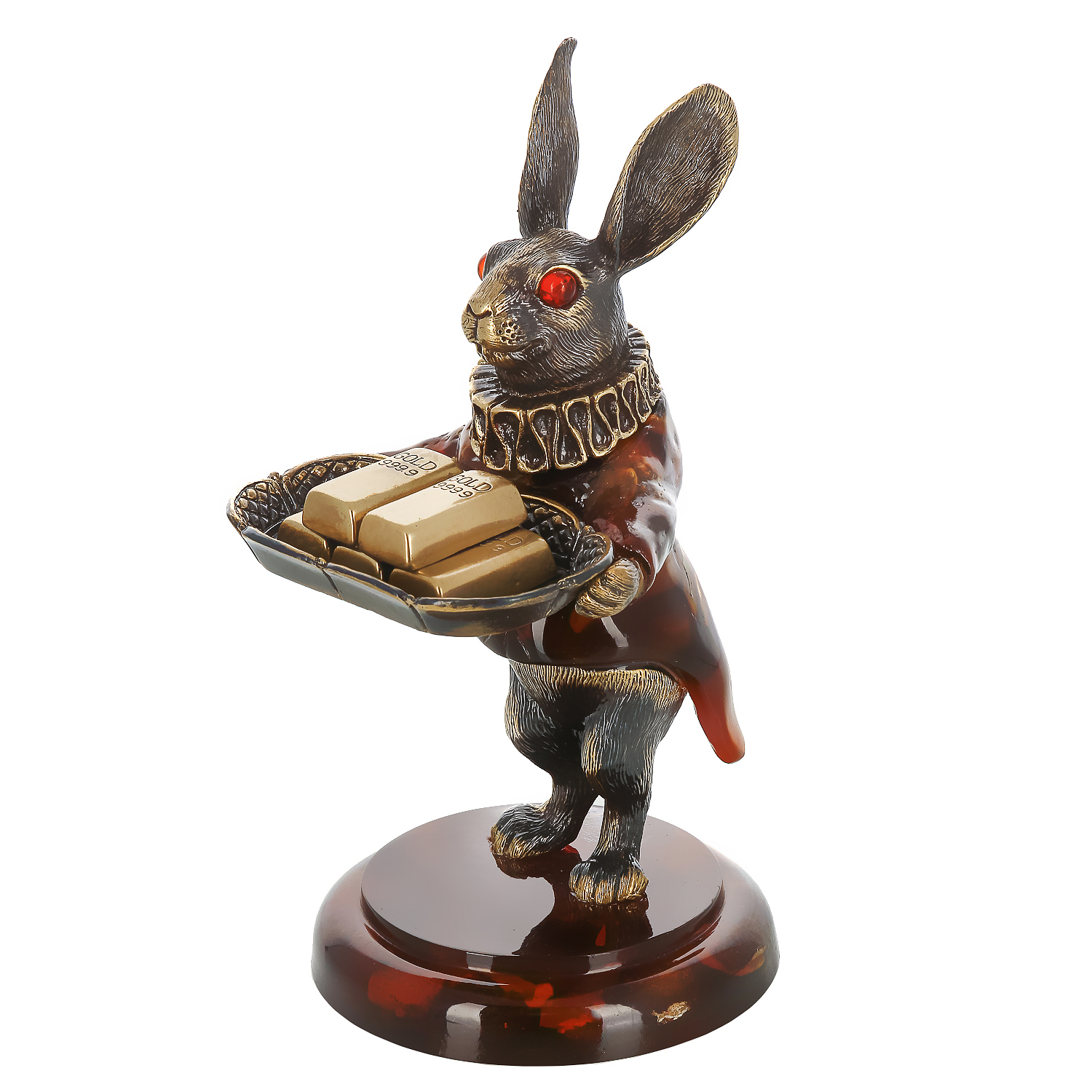Скульптура из янтаря и бронзы "Кролик. Живи по-царски".