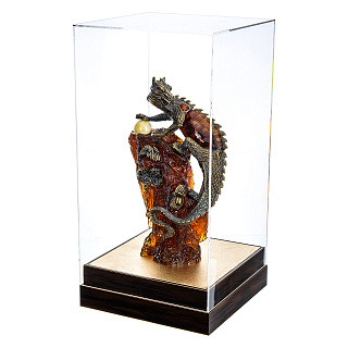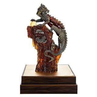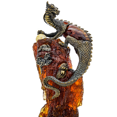 Скульптура из янтаря и бронзы «Китайский дракон на скале»