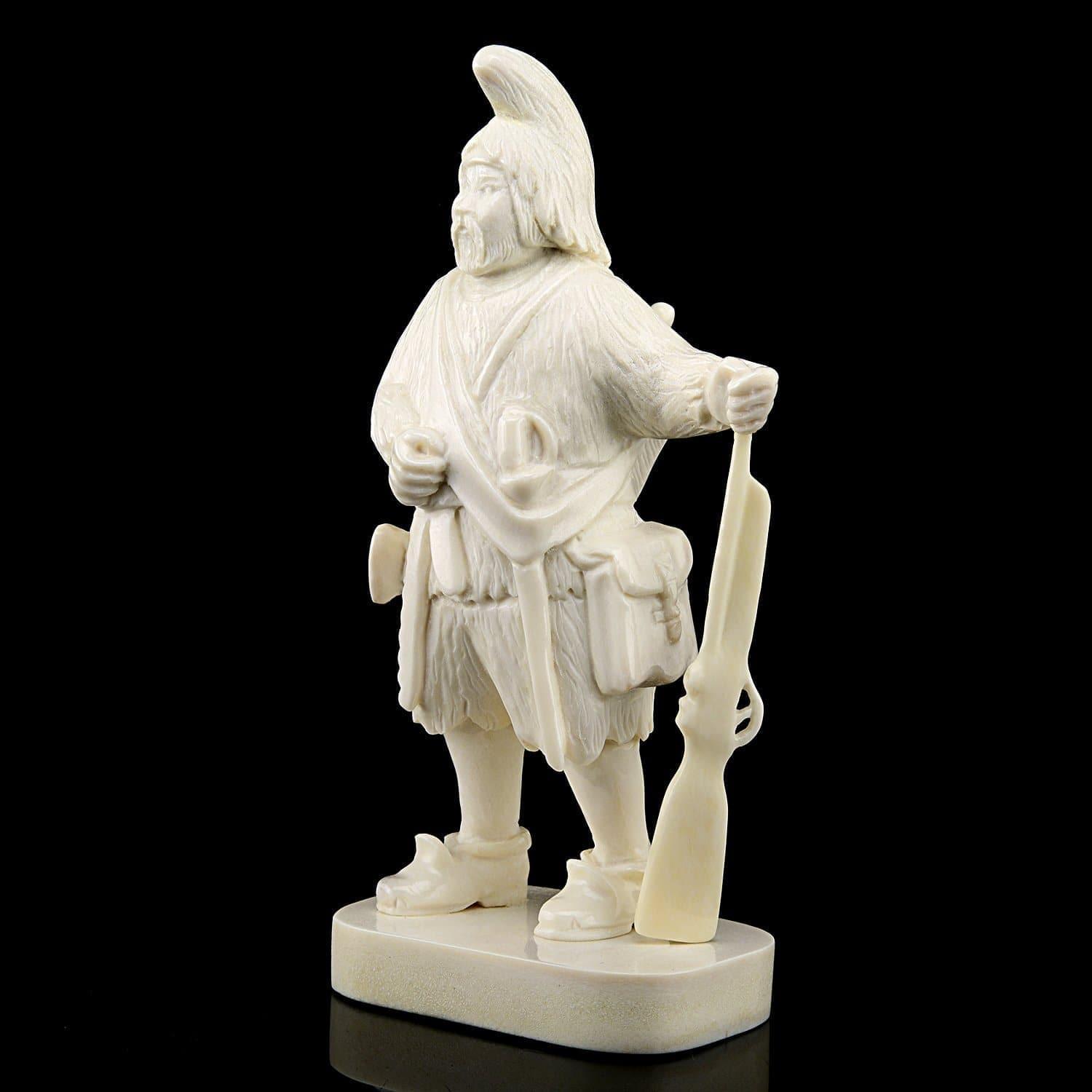 Импозантный Робинзон - добрый гость Вашего дома и его талисман! Фигура первопроходца и естествоиспытателя воплощена с иронией и мастерством. Эта уникальная работа для интерьера выточена вручную мастером-косторезом Севера России в соответствии с авторским эскизом из рога лося. Она отличается максимальной детализацией, выразительностью и своеобразным авторским почерком.