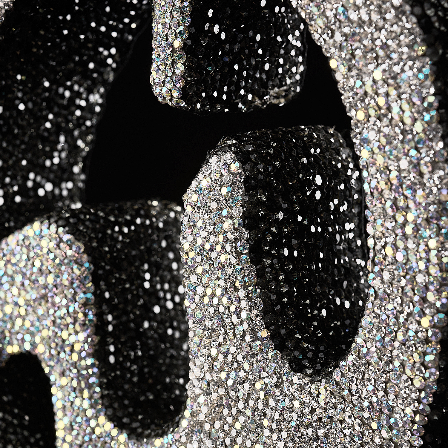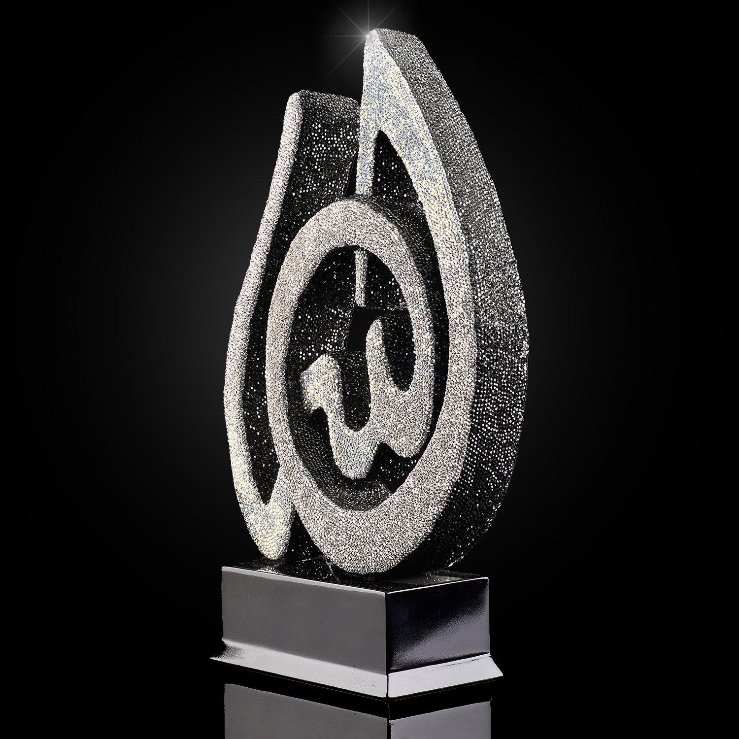 Мастера Asfour Crystal представляют уникальное соединение высокого искусства исламской каллиграфии и виртуозной техники работы с хрусталем. Трехмерная скульптура Священного Имени, высотой 50 см, полностью выложена вручную стразами, что создает сложную игру света и тени, подчеркивающую каждый изгиб сакральной формы.