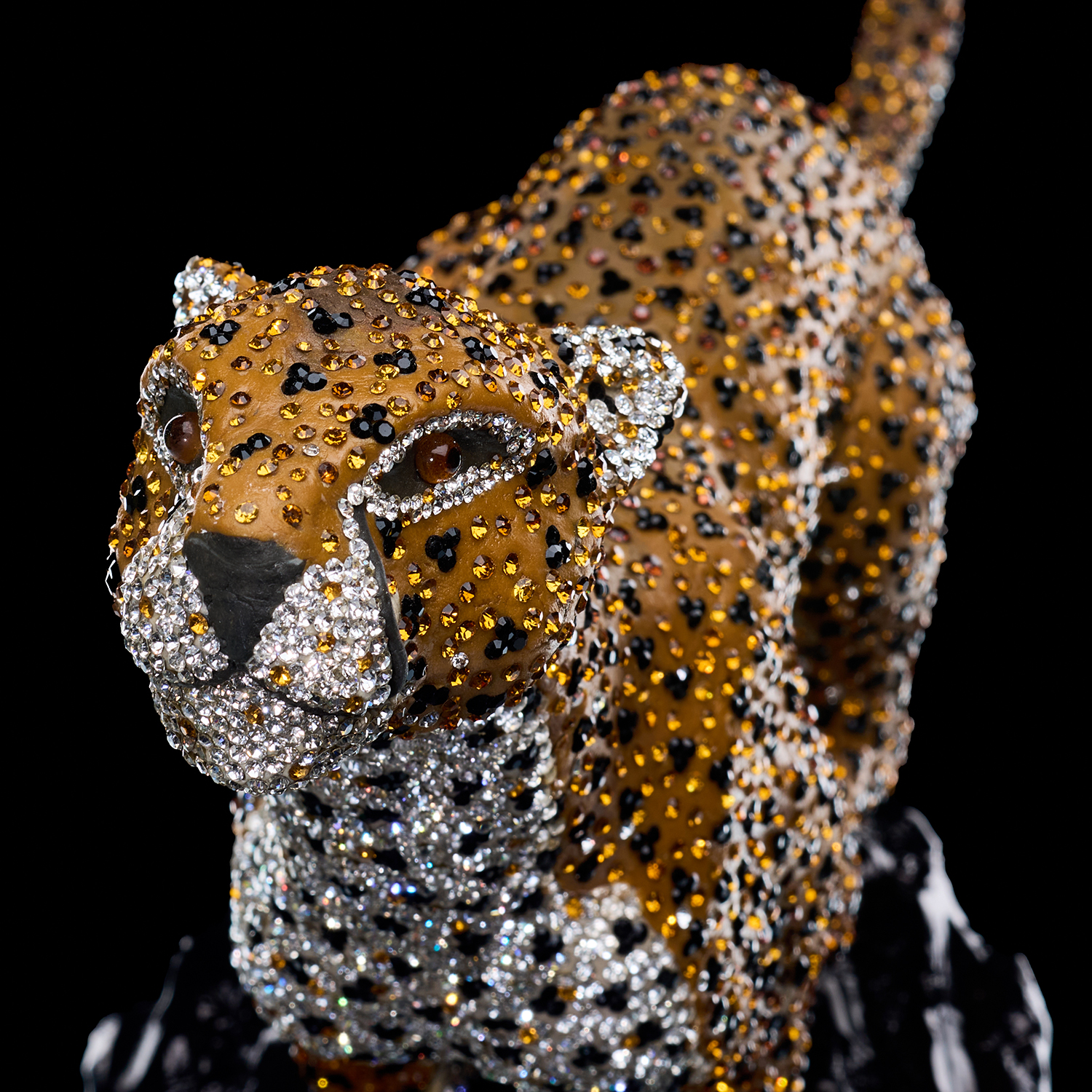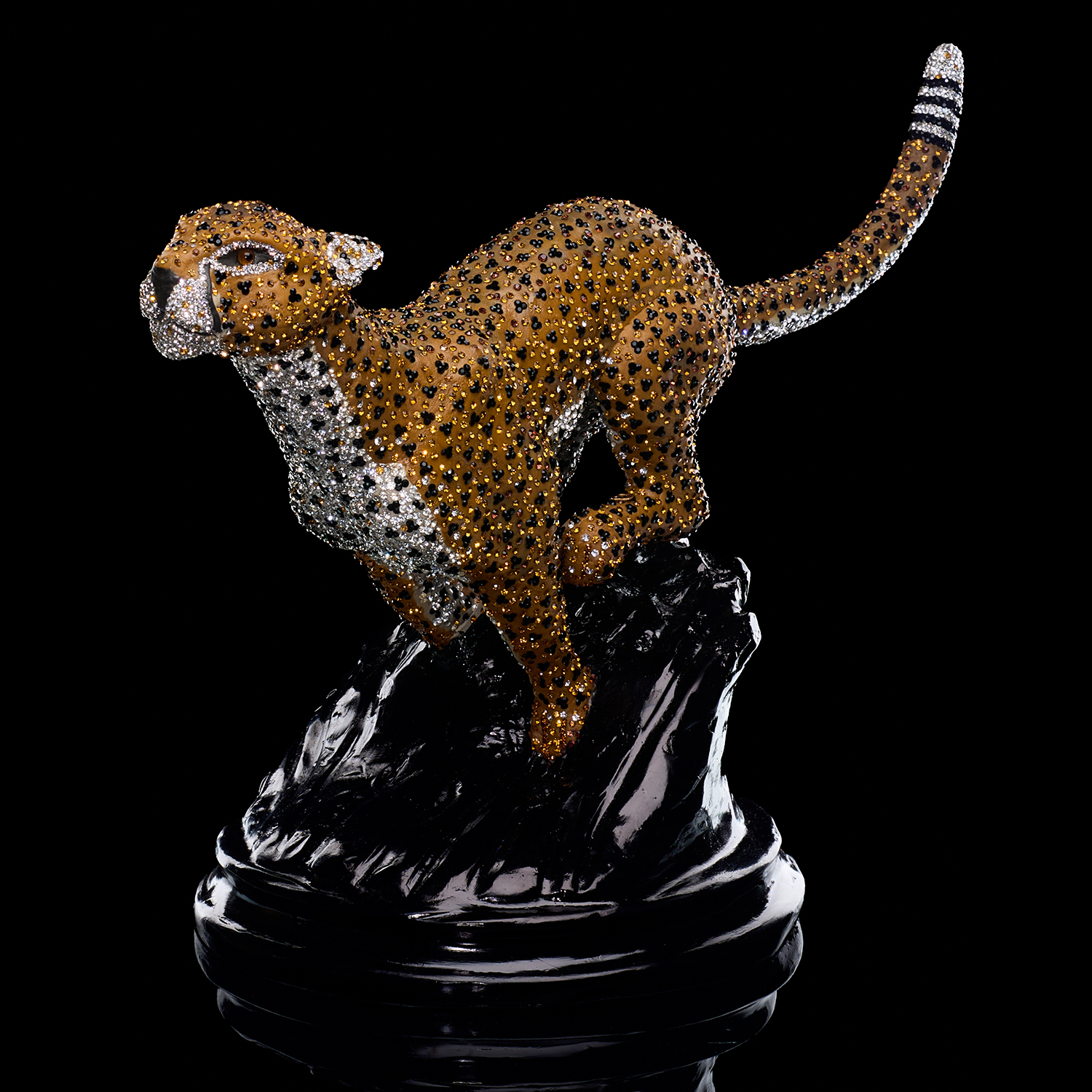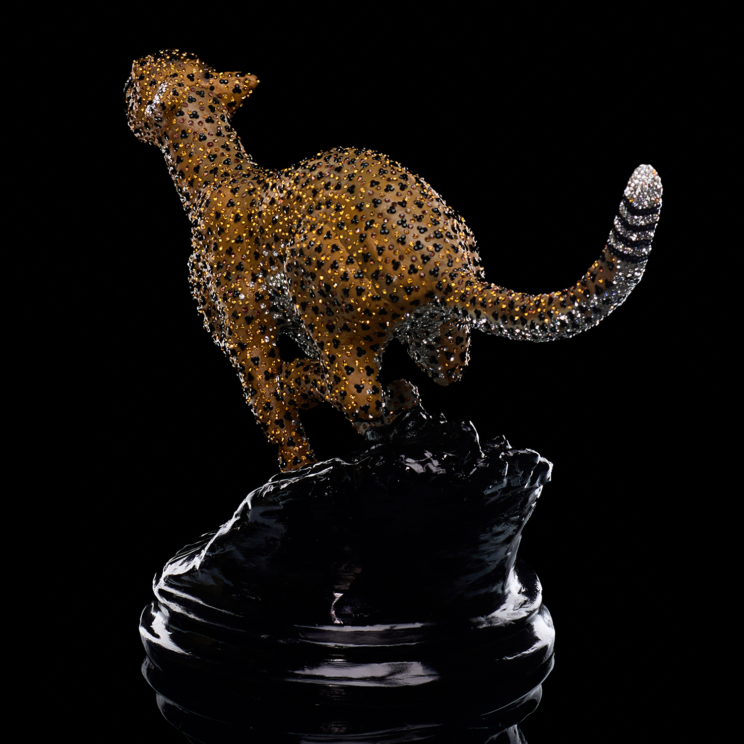 Шедевр ювелирной работы от Asfour Crystal — гепард в полете. Создать иллюзию движения, инкрустируя сложную динамичную форму хрустальными стразами, — задача высочайшей сложности. Каждый кристалл вручную ориентирован так, чтобы вместе они подчеркивали пластику могучего тела, игру рельефных мускулов под кожей. Скульптура не просто сверкает, она живет и движется в потоках света, демонстрируя безупречное мастерство бренда. Этот арт-объект говорит о статусе и амбициях своего владельца, стремящегося к вершинам с быстротой и изяществом царя зверей.