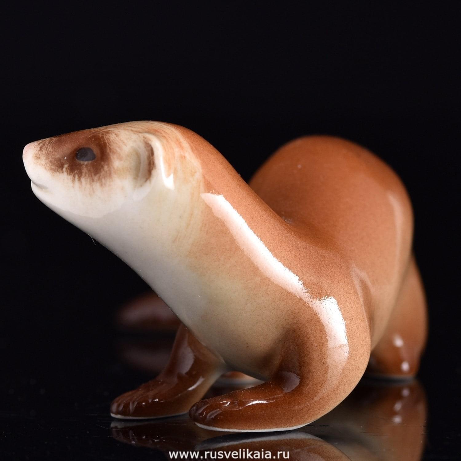В галерее работ мастеров с легендарного Императорского фарфорового завода - старейшего профильного предприятия России - особое место отведено анималистическому собранию. Анималистическая галерея предприятия, без сомнения, одна из самых ярких и необычных. Она включает в себя фигурки и скульптуру различных животных и птиц. Новинка коллекции фигурка хорька. Фигурка отличается высокой детализацией и необычной подачей. Роспись выполнена вручную в надглазурной и подглазурной техниках.