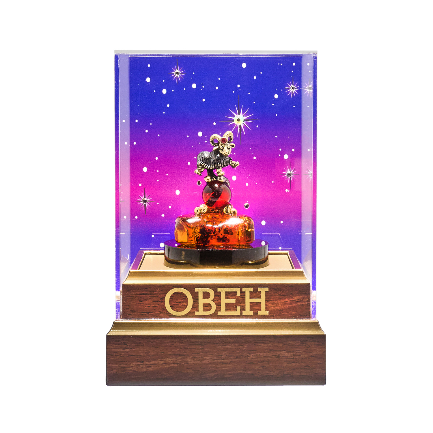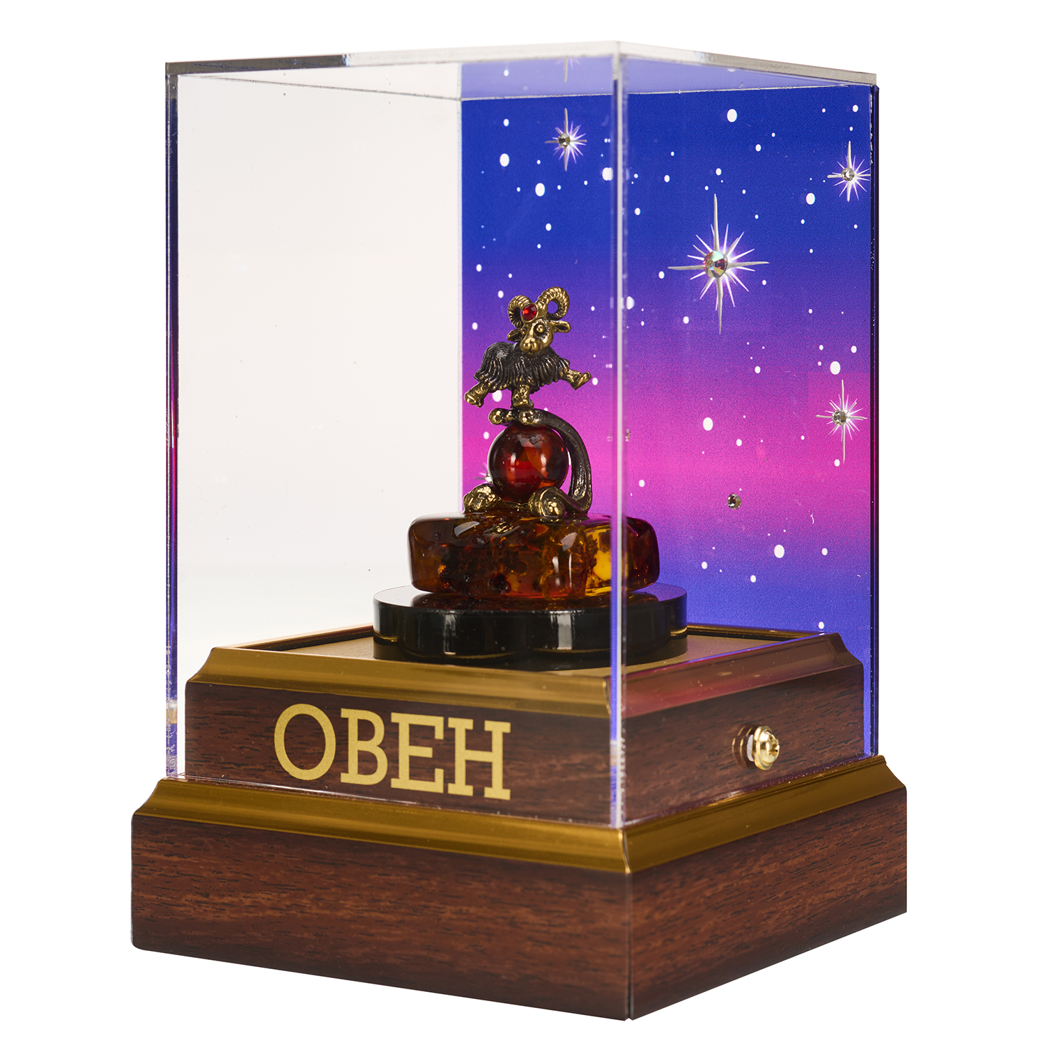 Статуэтка «Овен» — взрыв игривой энергии и огненного духа знака. Озорной мультяшный баран, стоящий на двух ногах на гребне бронзовой волны, взметнувшейся от янтарного основания. Во лбу у него сияет кристалл коньячно-янтарного оттенка — словно капля солнца, пойманная в вечном танце. Эта динамичная поза и лукавый взгляд воплощают неутомимый энтузиазм, смелость и лидерскую искру Овна. Статуэтка представлена под прозрачным колпаком с мерцающим звездным небом из искрящихся кристаллов и дополнена фирменным подарочным пакетом, создавая яркий подарок для тех, кто зажигает сердца азартом.