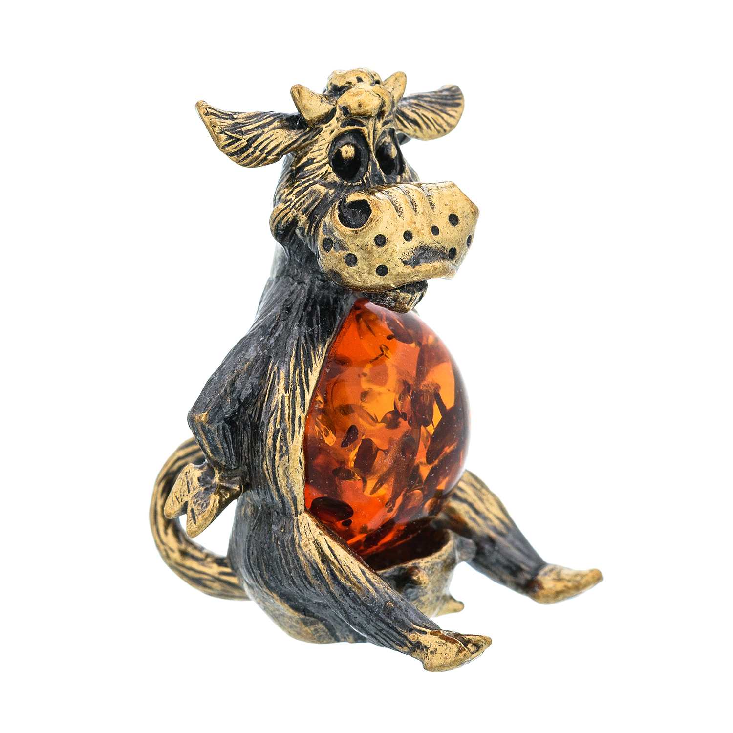 Статуэтка с янтарем "Корова - копытца в боки".