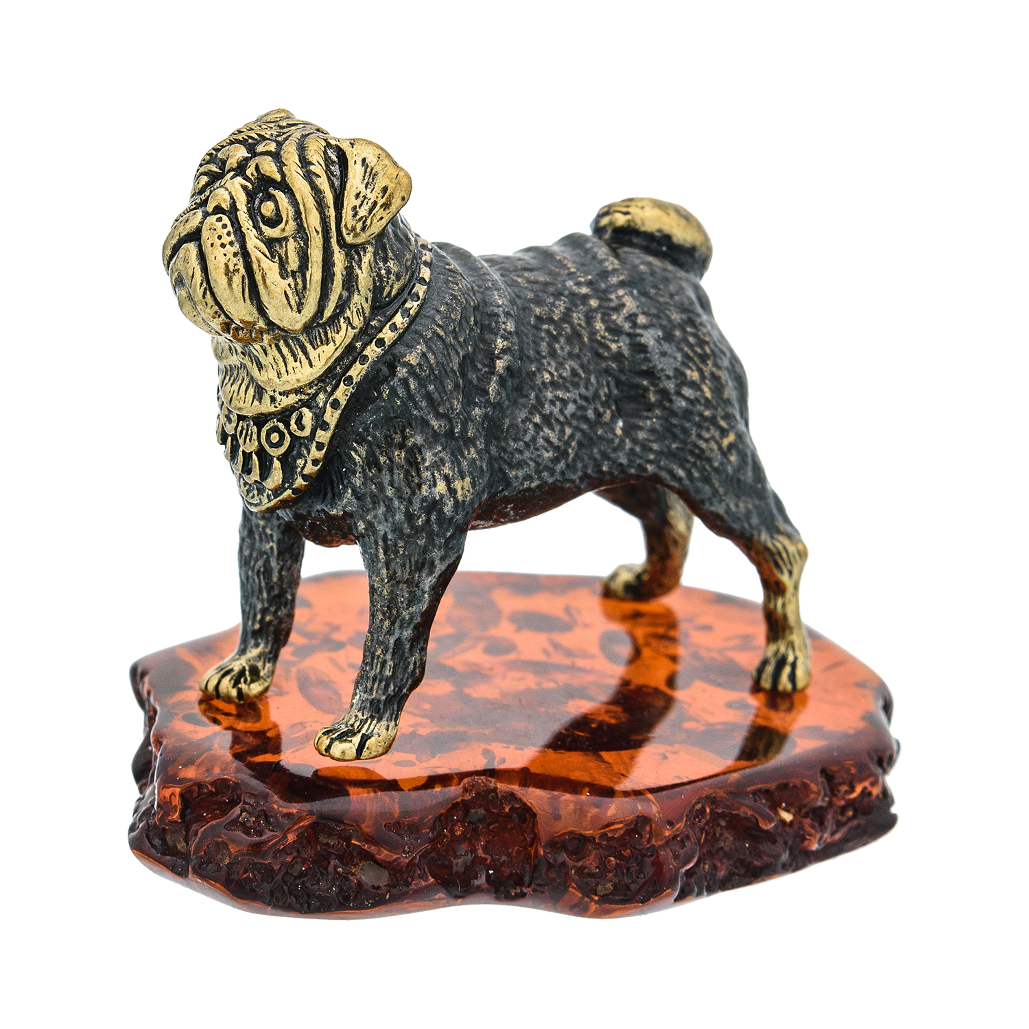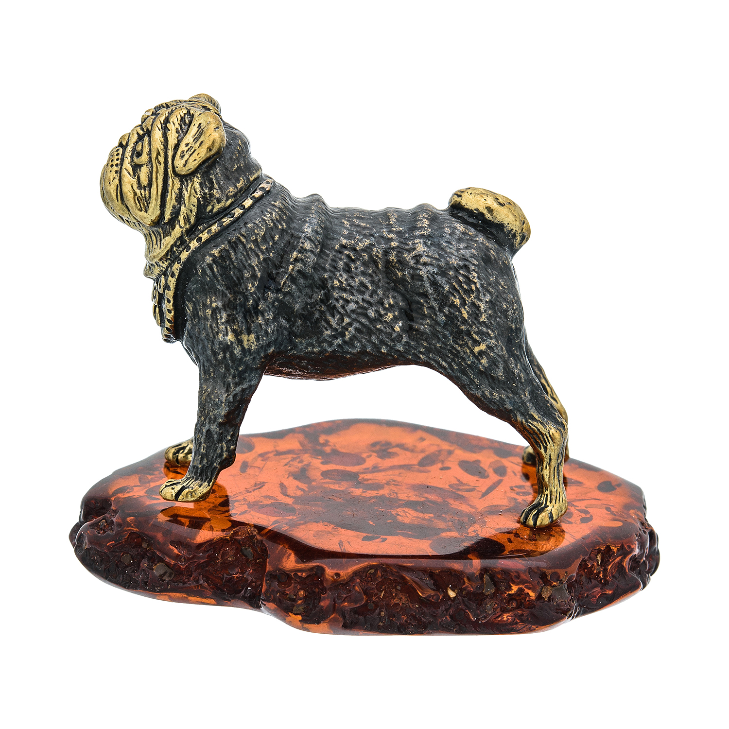 Статуэтка с янтарем "Собака Мопс".