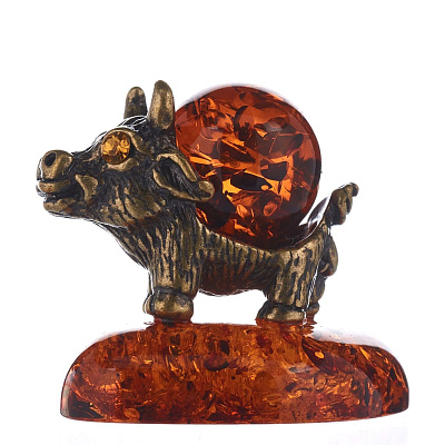 Статуэтка из янтаря и бронзы «Знак зодиака Телец»
