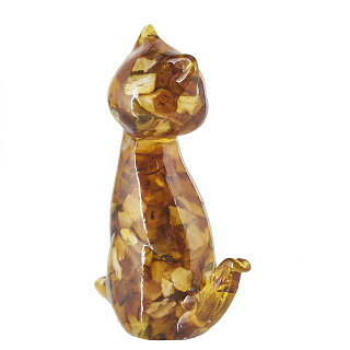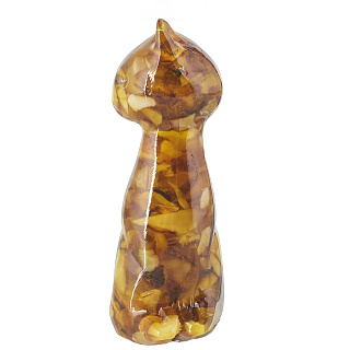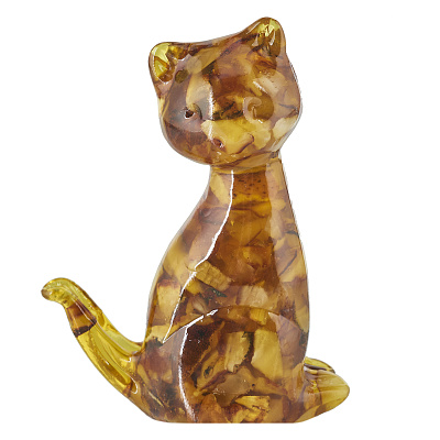 Статуэтка с янтарем «Кот с чашечкой кофе»