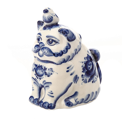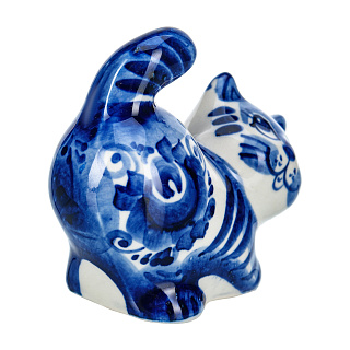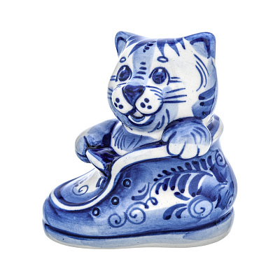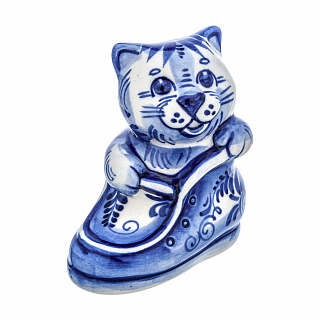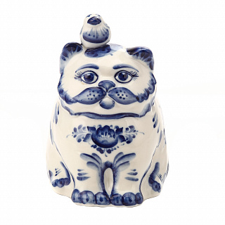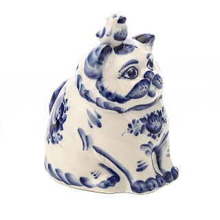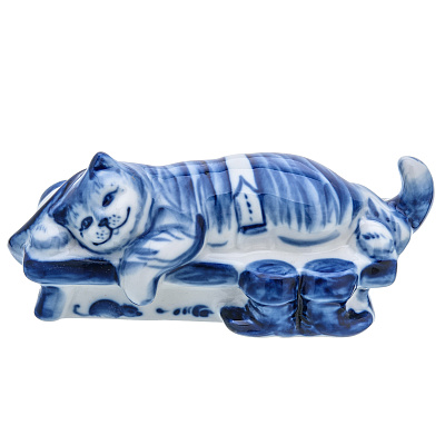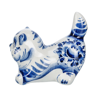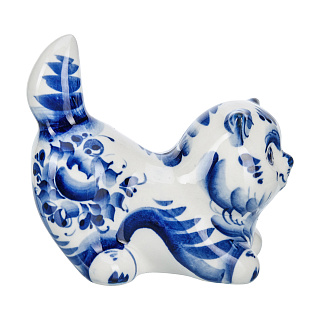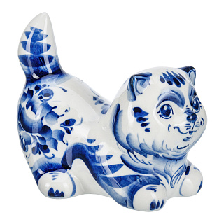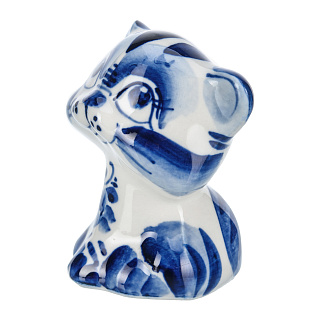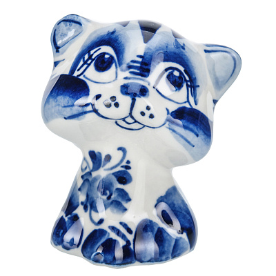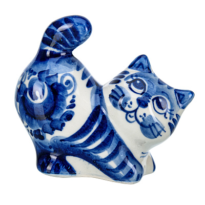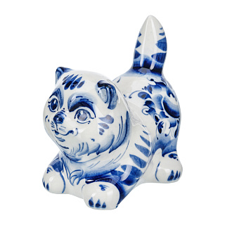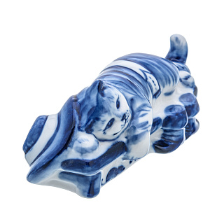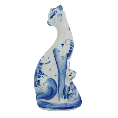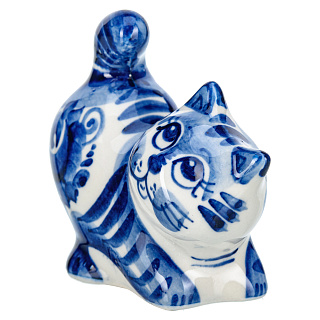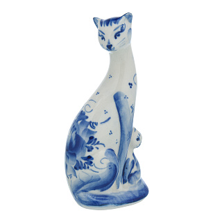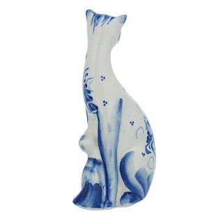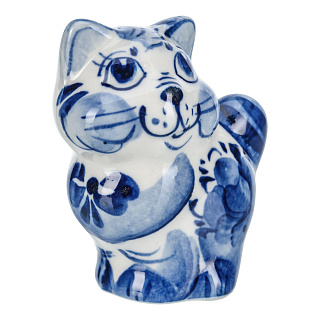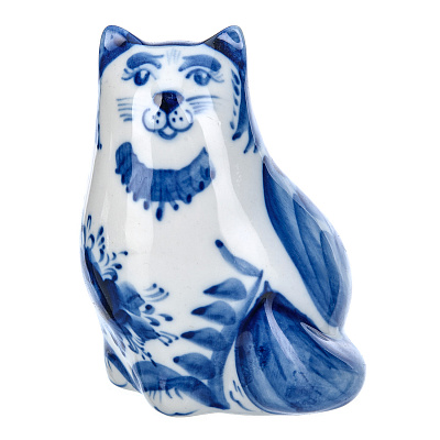 Статуэтка «Кот задумчивый». Гжель в цвете