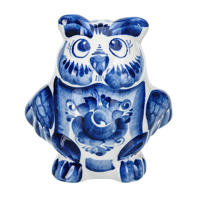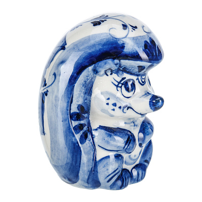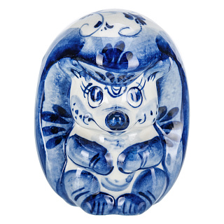 Статуэтка-копилка «Еж с бабочкой». Гжель