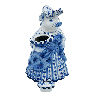 Статуэтка-копилка «Свинья Хавронья». Гжель