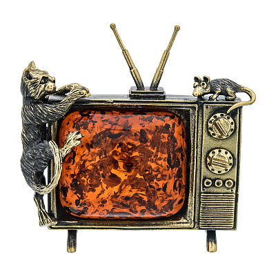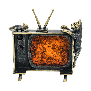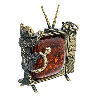 Статуэтка с янтарем «Кот и мышка на телевизоре»