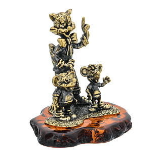 Статуэтка с янтарем «Кот и мышка друзья»