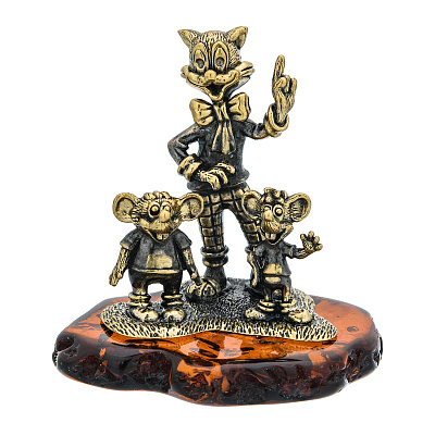 Статуэтка с янтарем «Кот Леопольд и мышата»