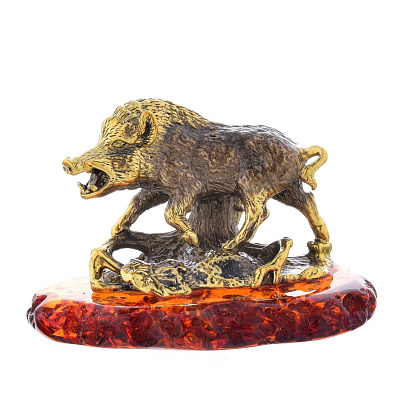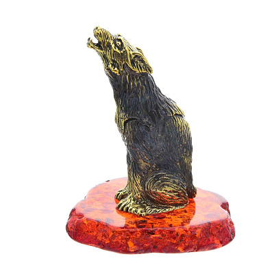 Подставка под ручку со скульптурой из рога лося и кости мамонта «Медведь»