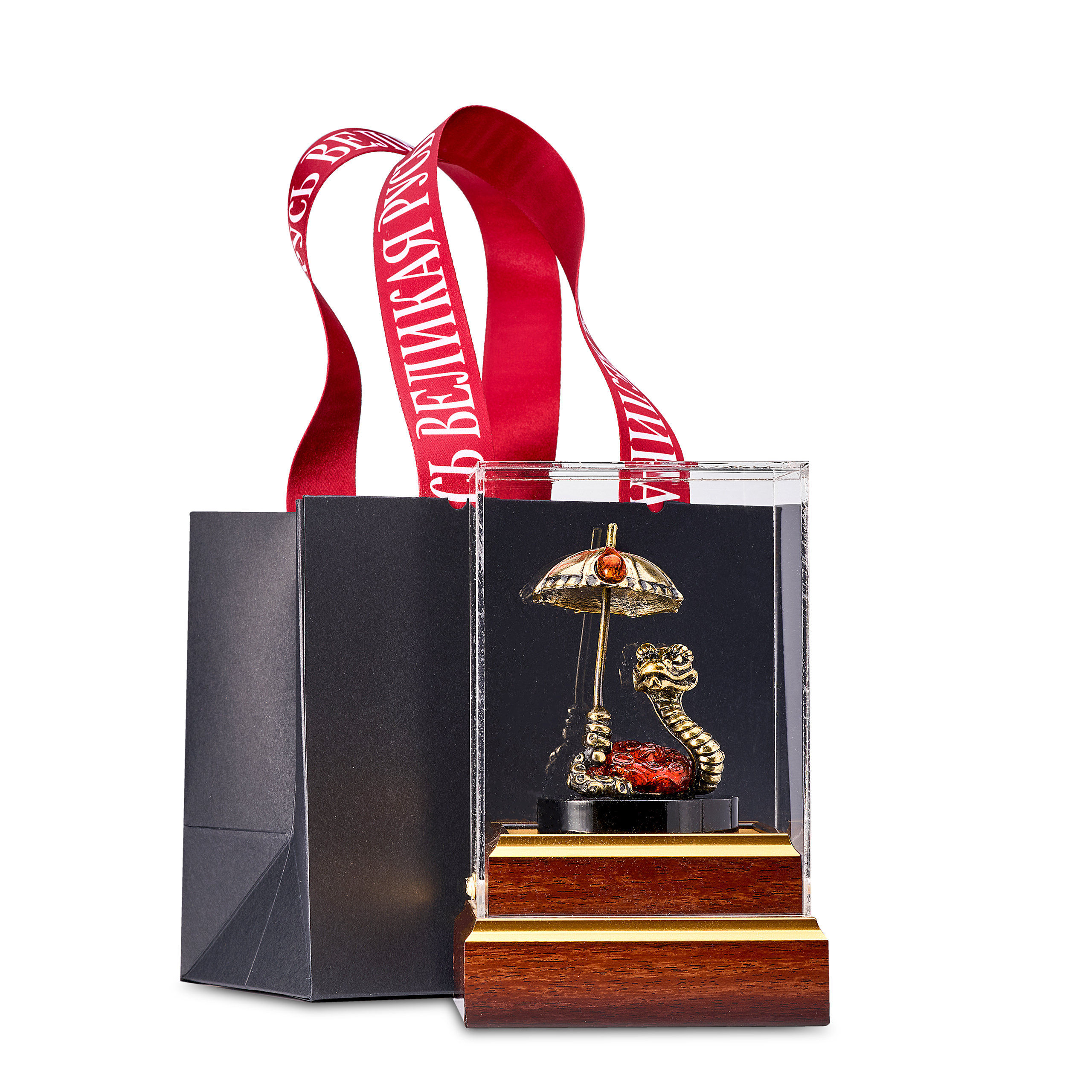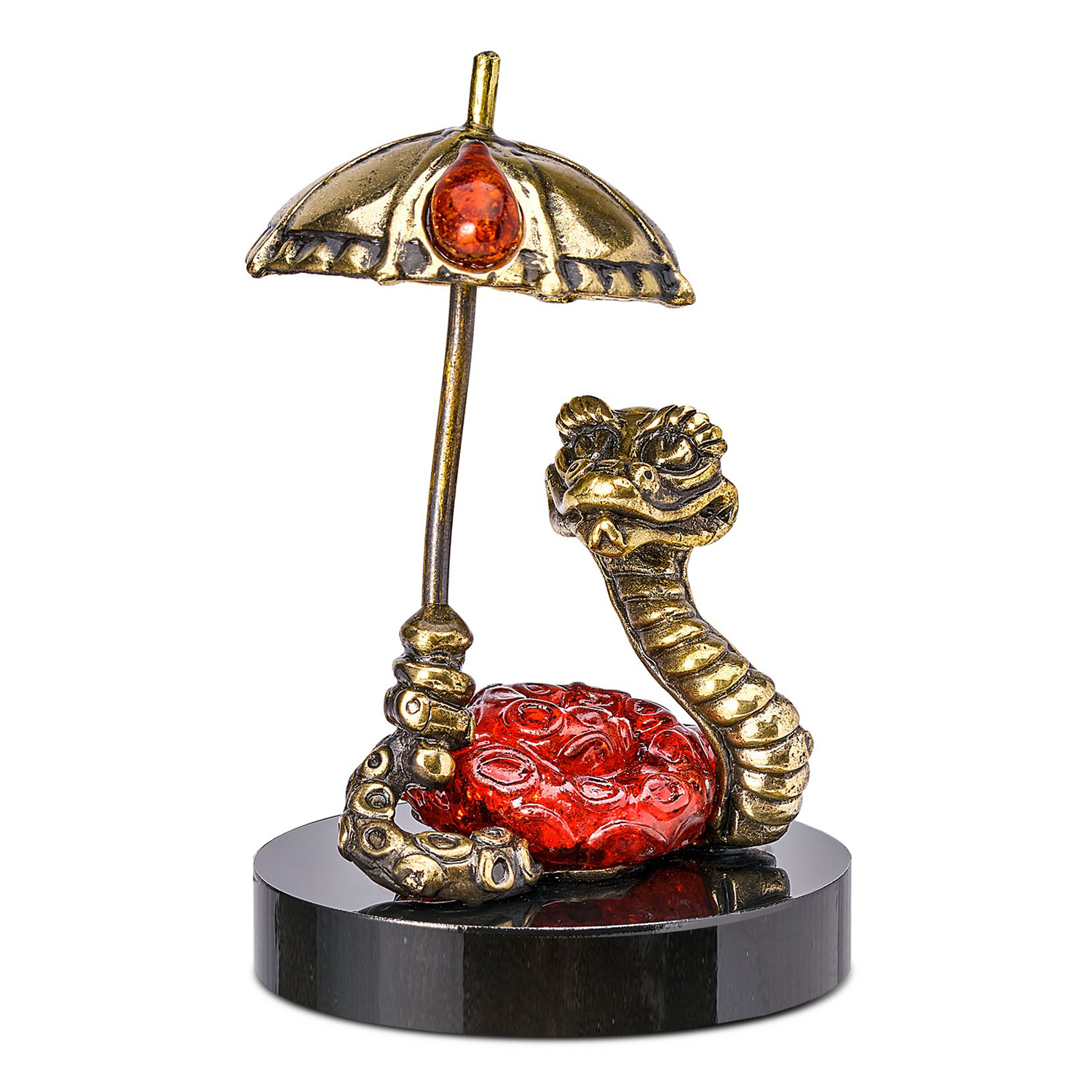 Змея Символ 2025 года. Статуэтка с янтарем «Змей с тростью»