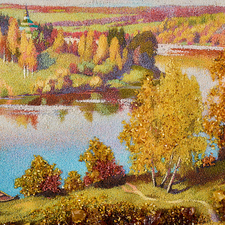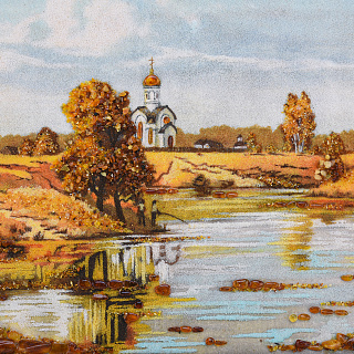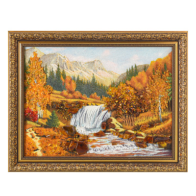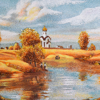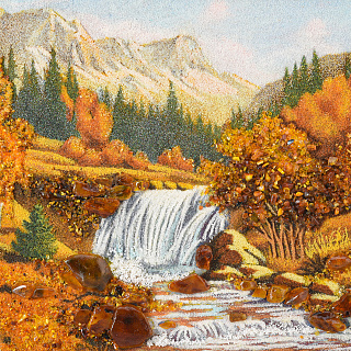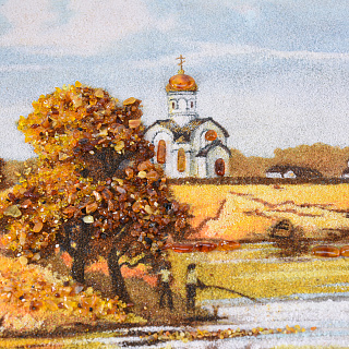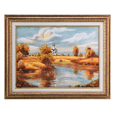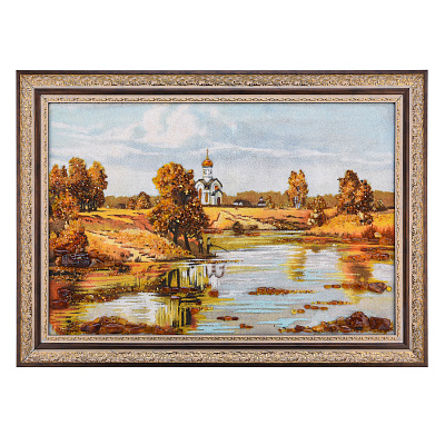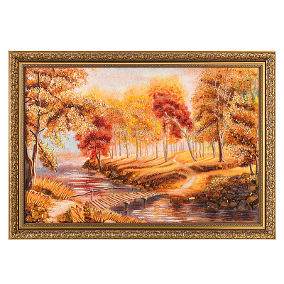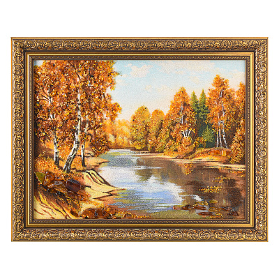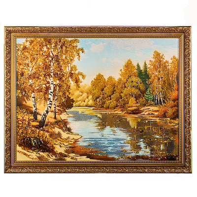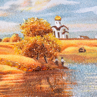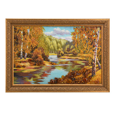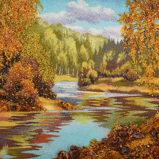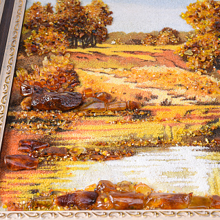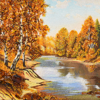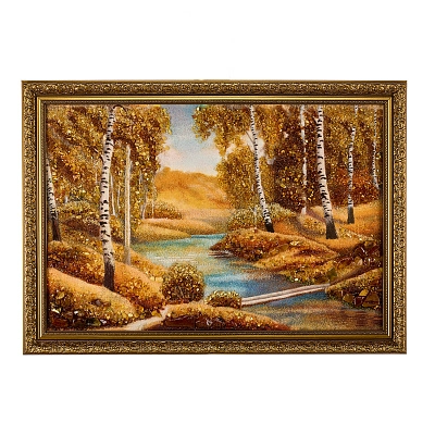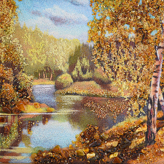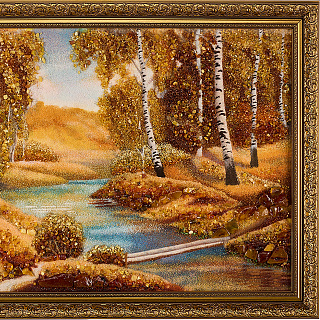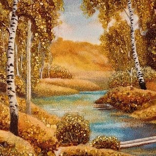 Картина янтарная «Пейзаж. Солнечный день на речке» 30х40 см