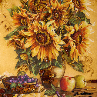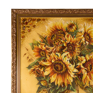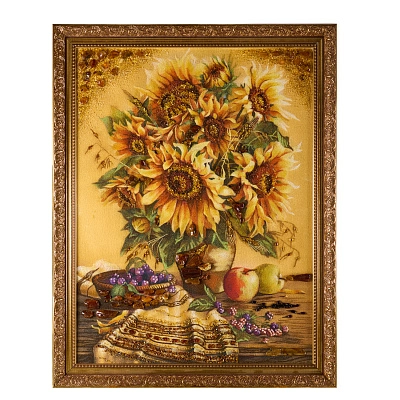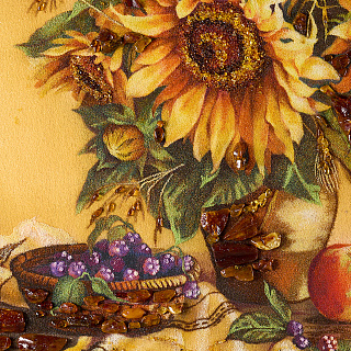Картина - панно янтарное «Открытка с цветами» 18 х 13 см
