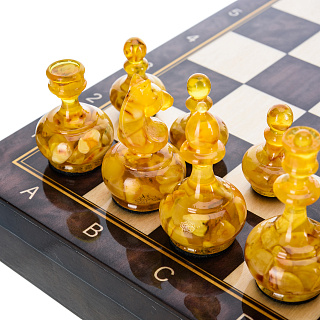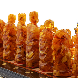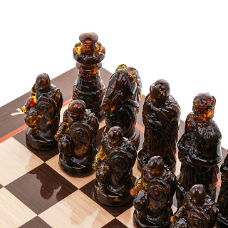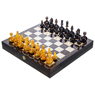 Шахматы из мореного дуба с янтарными фигурами 44х44 см