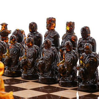 Шахматный ларец с янтарными фигурами «Рыцари» 48х48 см