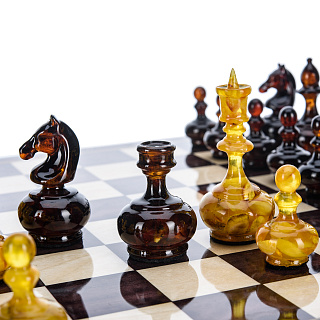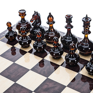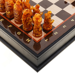 Шахматы из карельской березы и фигурами из янтаря 45х45 см