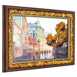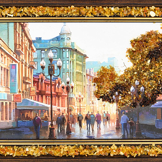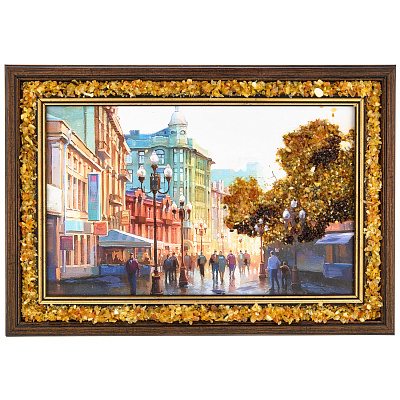 Картина янтарная «Прогулка по Арбату» 24х15 см